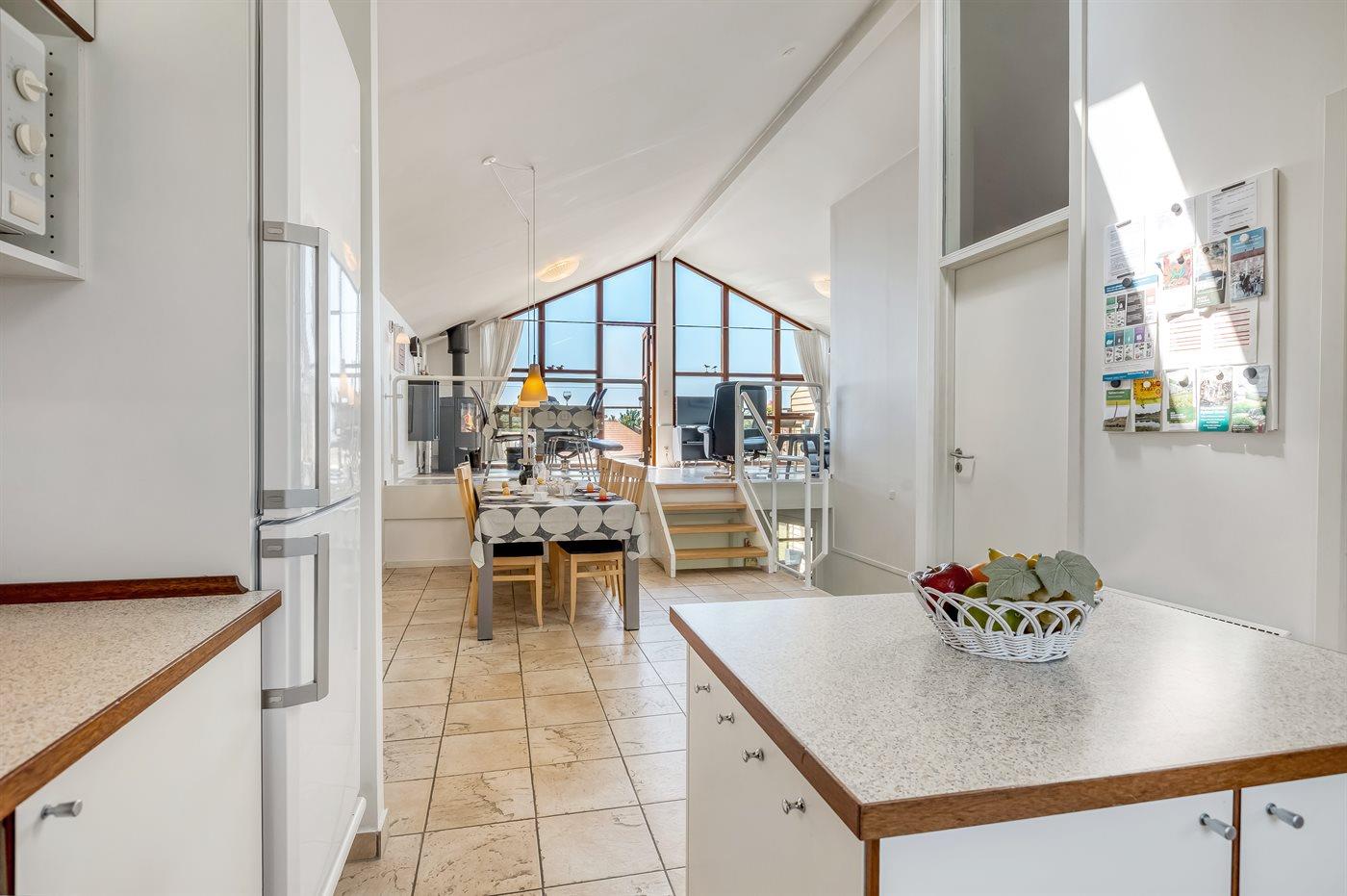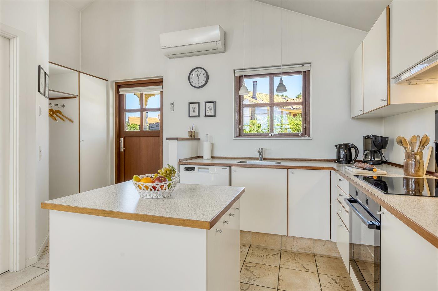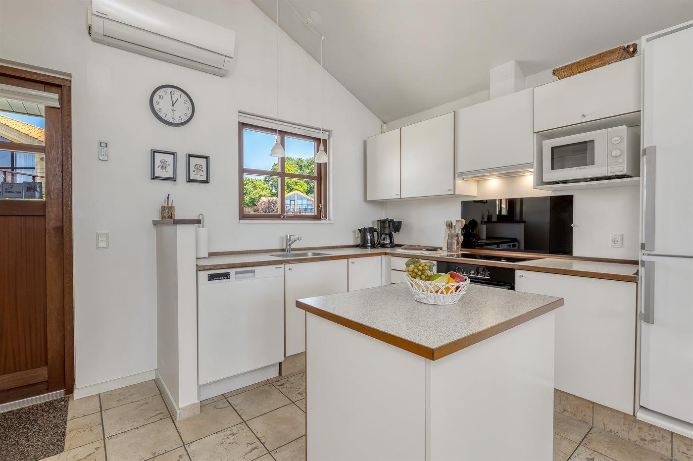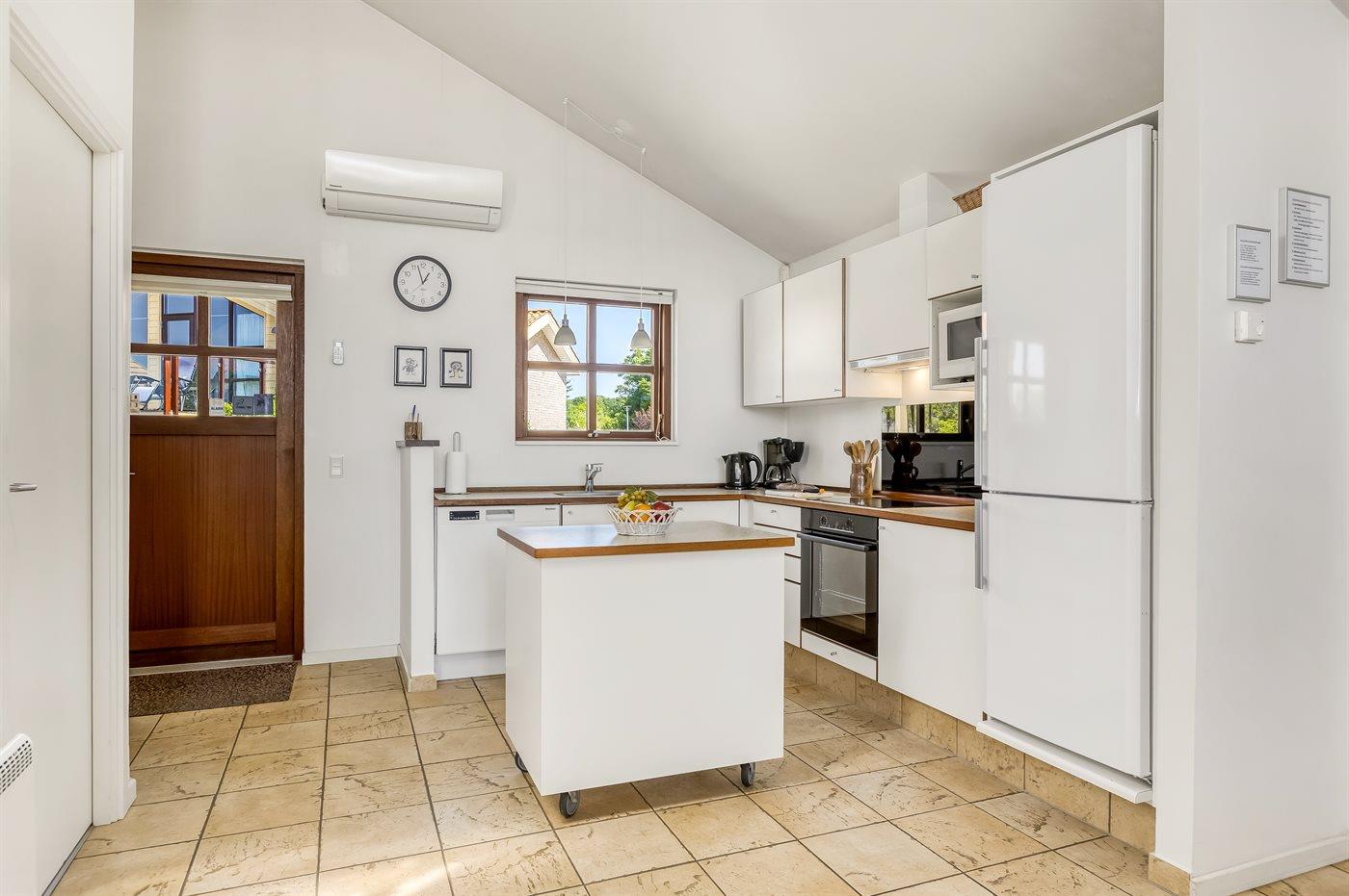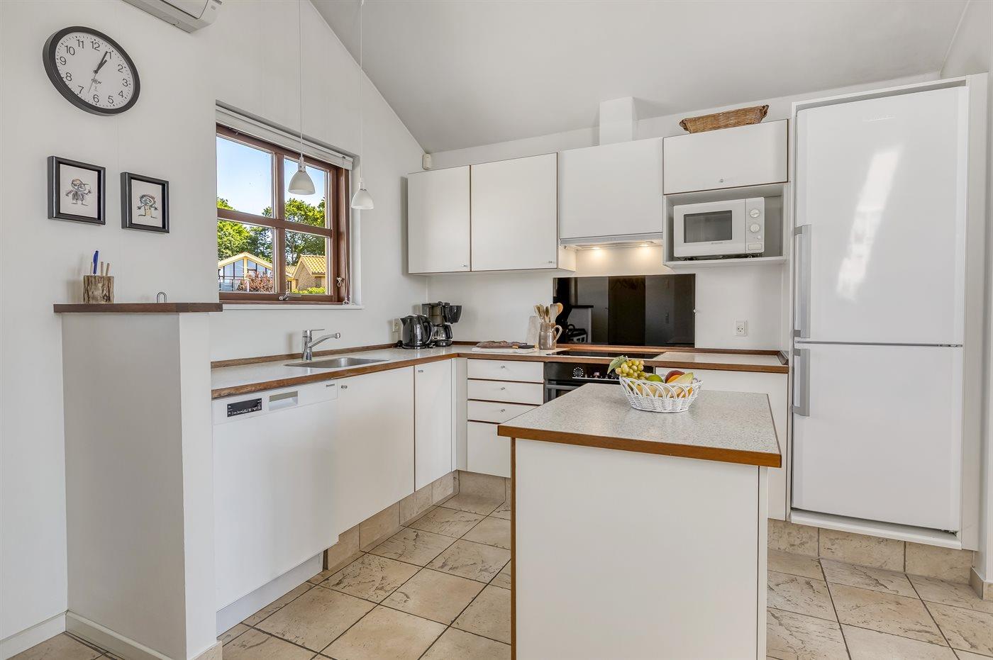Køkkenet er udstyret med 1 køleskab. Der er 4 induktionskogeplader, varmluftovn, mikrobølgeovn samt opvaskemaskine.