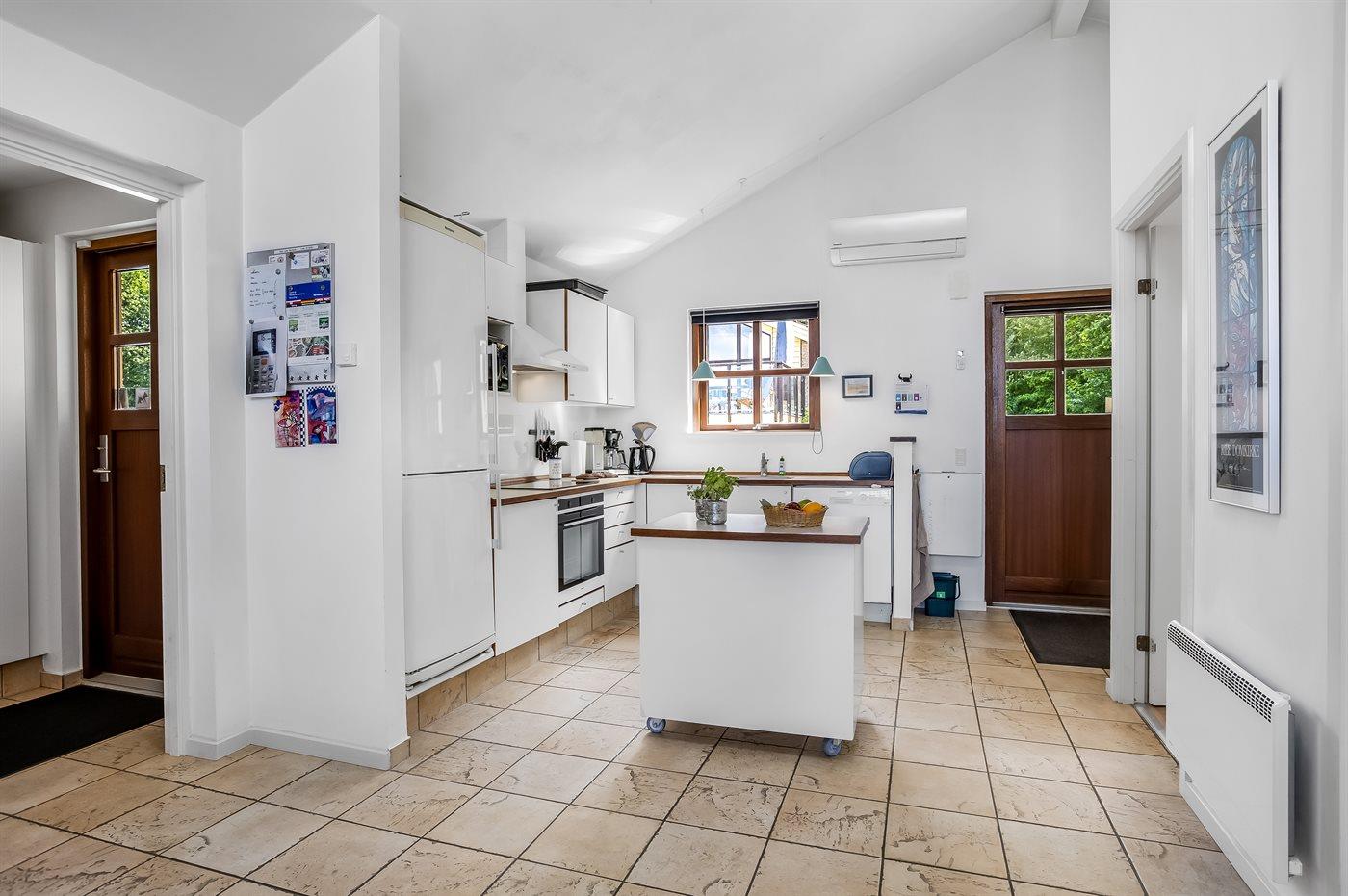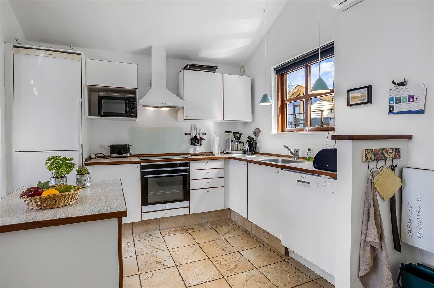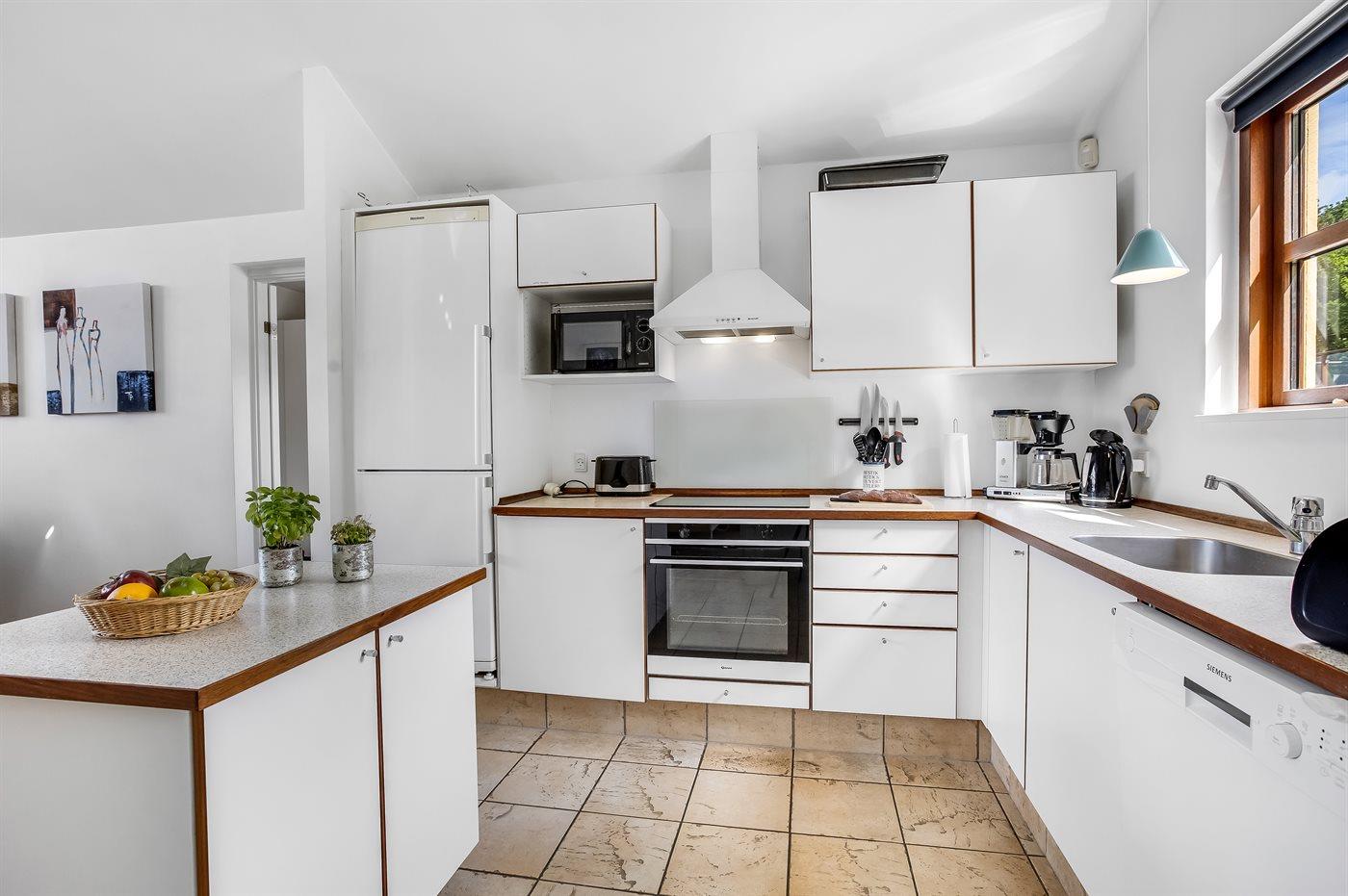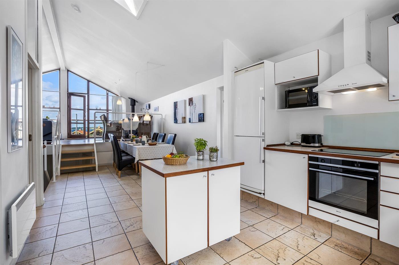 Køkkenet er udstyret med 1 køleskab. Der er 4 induktionskogeplader, varmluftovn, mikrobølgeovn samt opvaskemaskine.