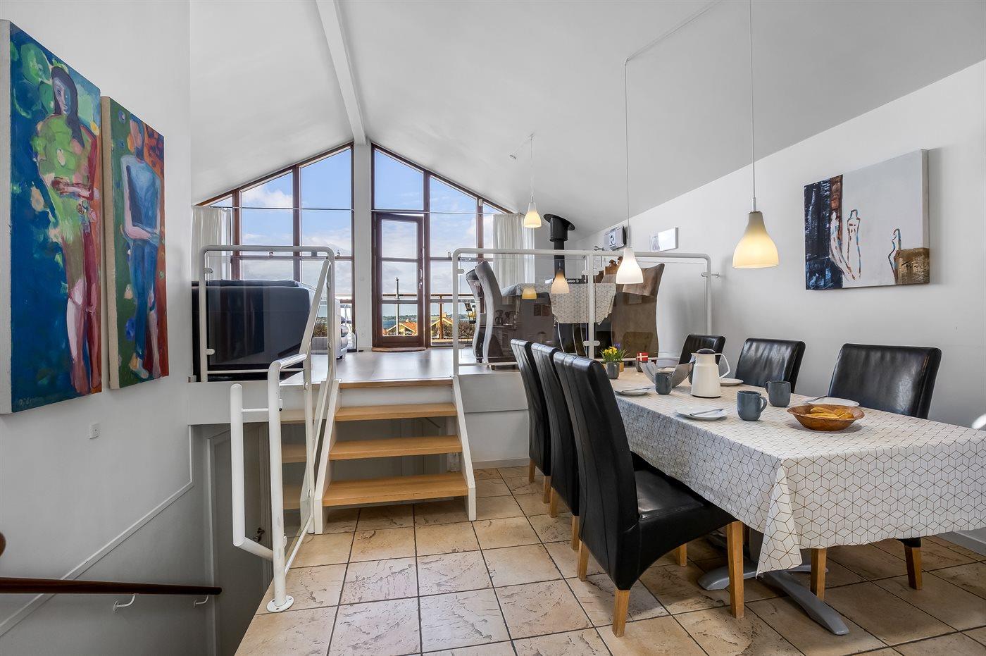 Feriehuset i 2 plan har særdeles god udsigt over vandet, og der er kun 150 meter til en meget børnevenlig, lille strand.