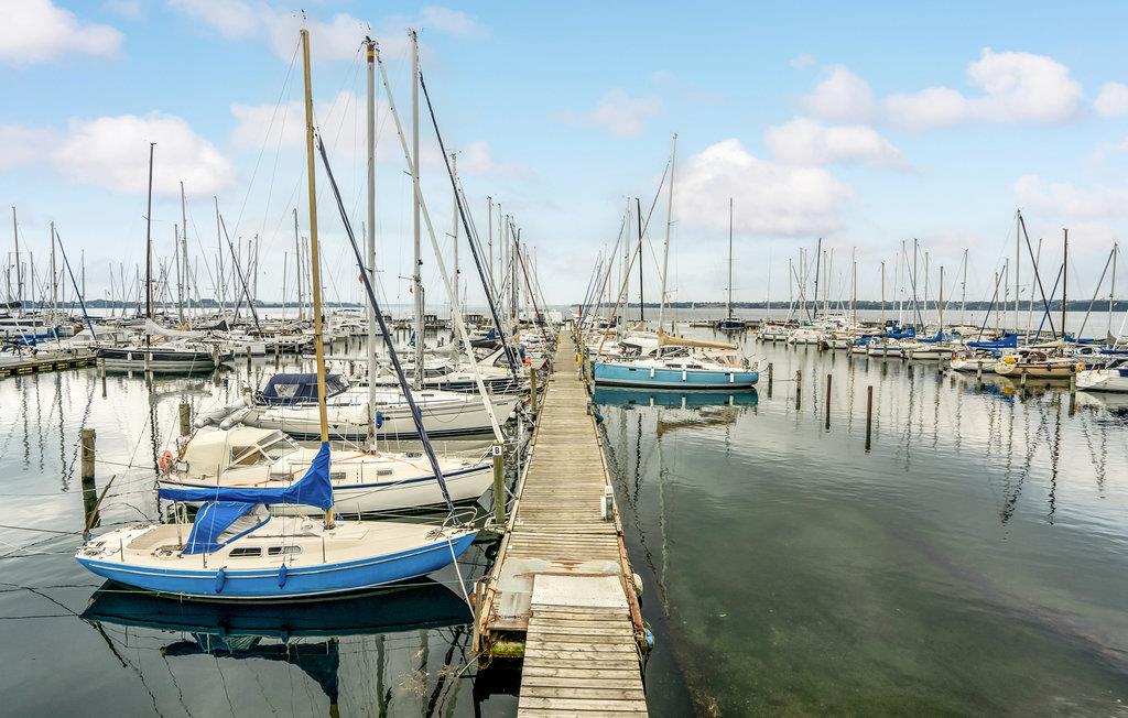 Flot feriehus ved Marina Minde med udsigt over Flensborg Fjord og nær børnevenlig strand.