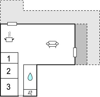 Soveværelse 5m2 (nr. 3) - 1 Soveplads. (Sofa, madras eller lignende).