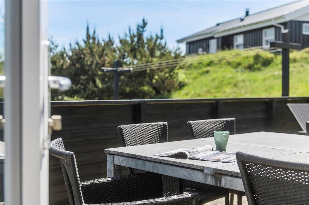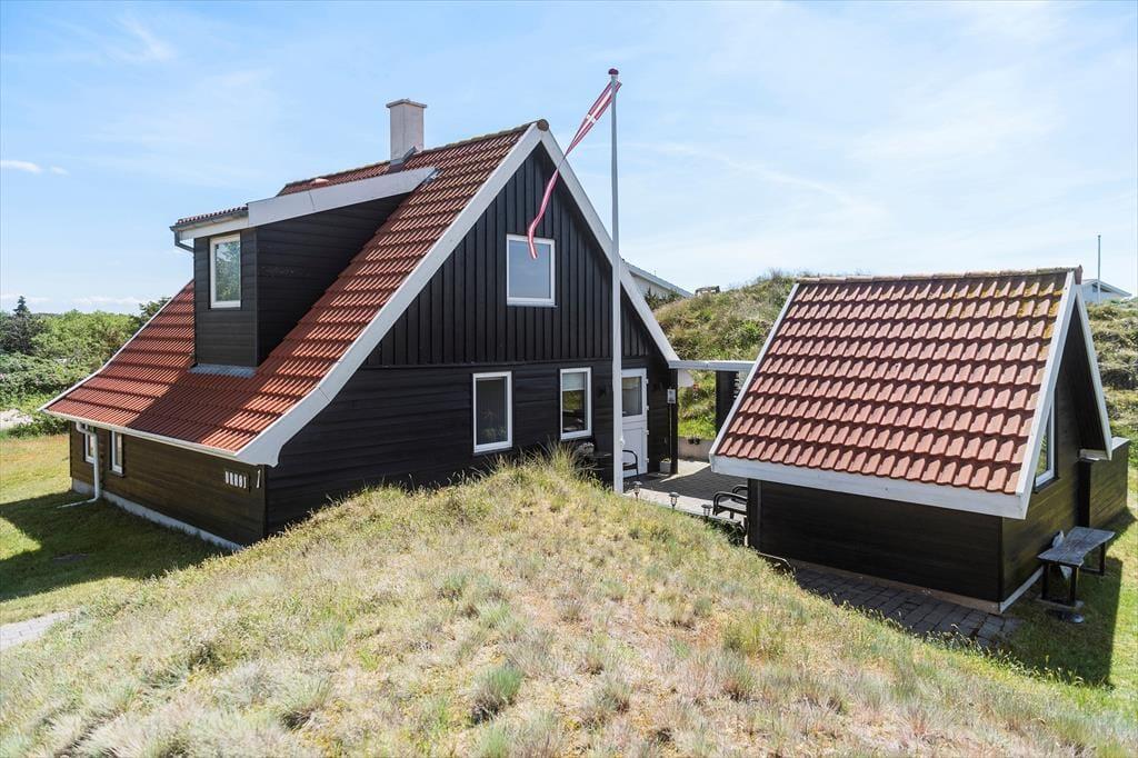 Rundt om huset er der flere dejlige opholdspladser, hvor du kan nyde ferielivet i ro og mag. Der er terrasse på begge sider af huset, hvor du kan få en lur i solen, spille kort med familien og nyde dagenes små og store måltider. Til børnene er der gode legeredskaber på naturgrunden, og de vil sikkert også synes, at det er hyggeligt at kravle på klitterne, mens de voksne får gang i grillen og begynder at forberede aftensmaden. Når I har spist, kan I blive siddende for at nyde de naturskønne omgivelser – og hvis I trænger til at bevæge jer lidt, kan hele familien spadsere ned på stranden for at opleve solnedgangen fra første parket.