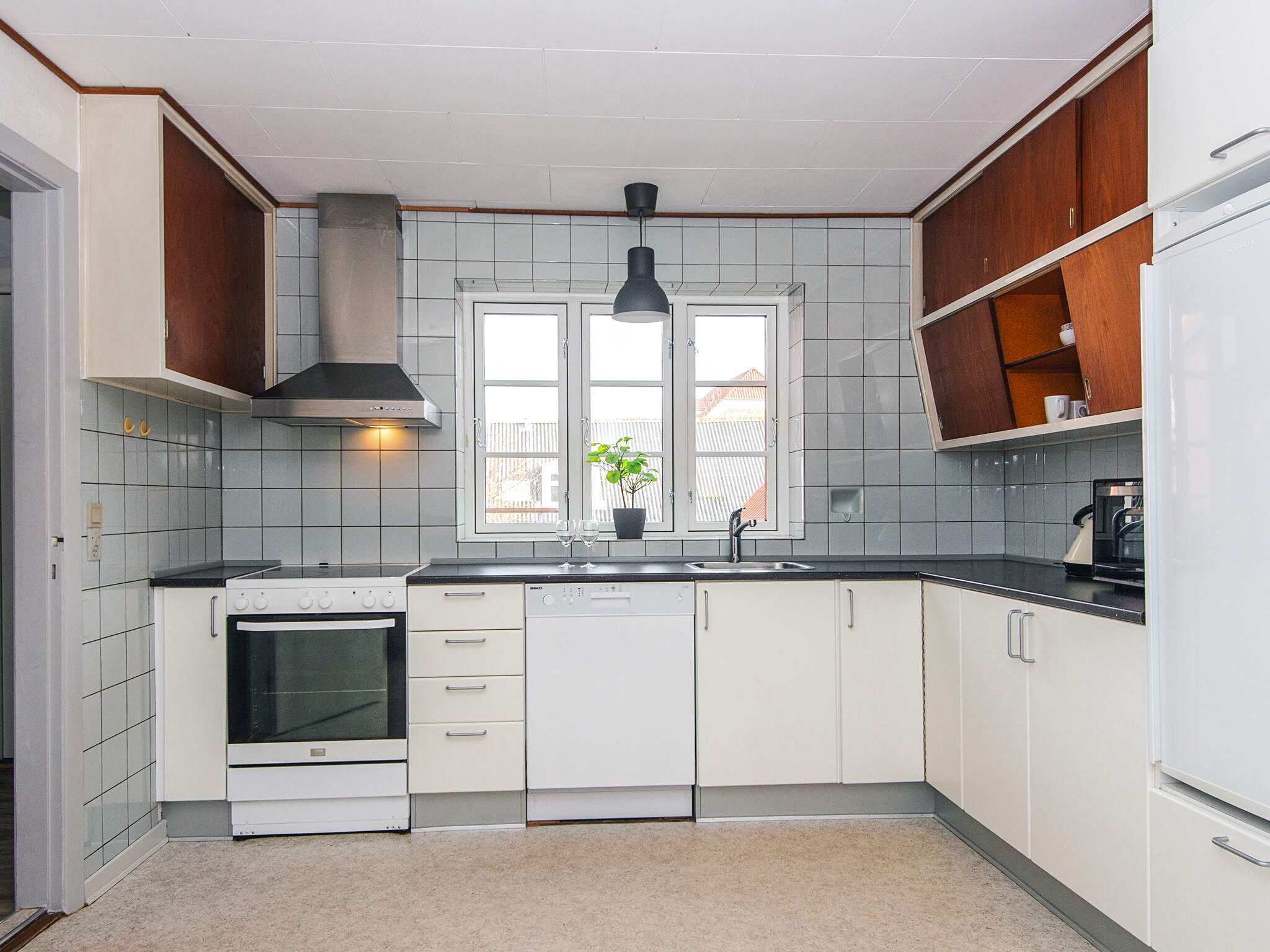 Lejligheden har en fantastisk udsigt fra kvistvinduerne og tilbyder en malerisk ramme for afslapning. Indenfor finder du et veludstyret køkken, der er ideelt til at tilberede måltider, og et gennemtænkt badeværelse med vindue. For ekstra komfort har lejligheden både opvaskemaskine og vaskemaskine, hvilket gør den til et praktisk valg til længere ophold.