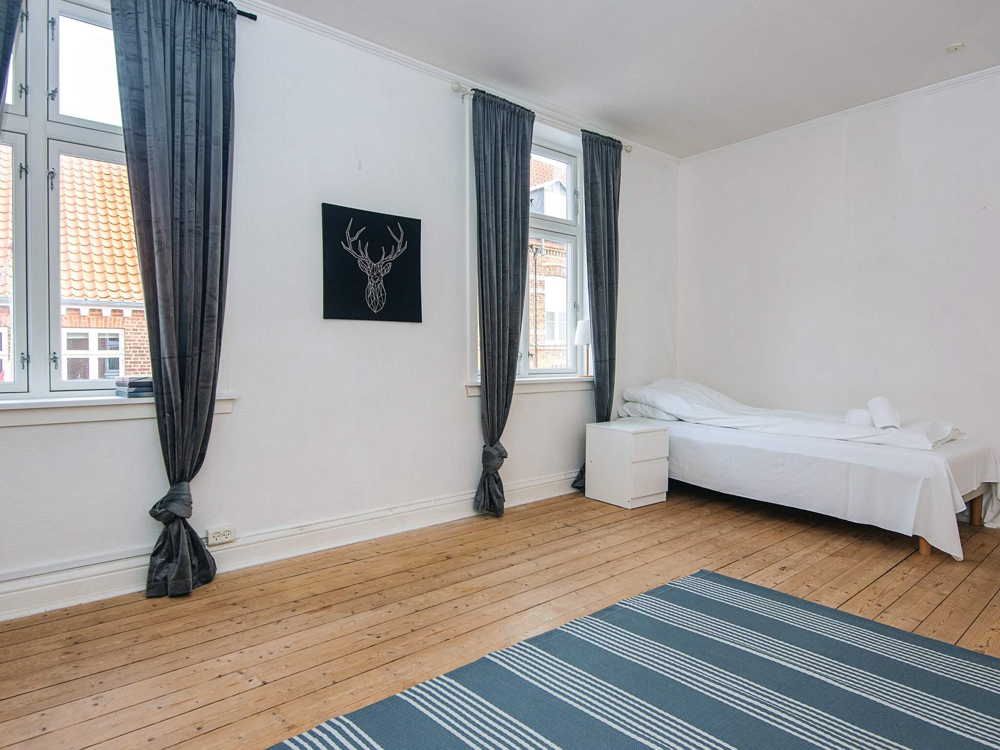 Smedegade er centralt beliggende med kort afstand til torvet, Ringkøbing Fjord og havnen, så du kan altid finde nogen at sludre med. Lejligheden er fordelt på to etager. På øverste etage er der to værelser med hver en seng, mens der på nederste etage er tre værelser med hver en seng. En af sengene kan flyttes til et andet værelse for ekstra fleksibilitet. Lejligheden byder på masser af plads til et behageligt ophold.