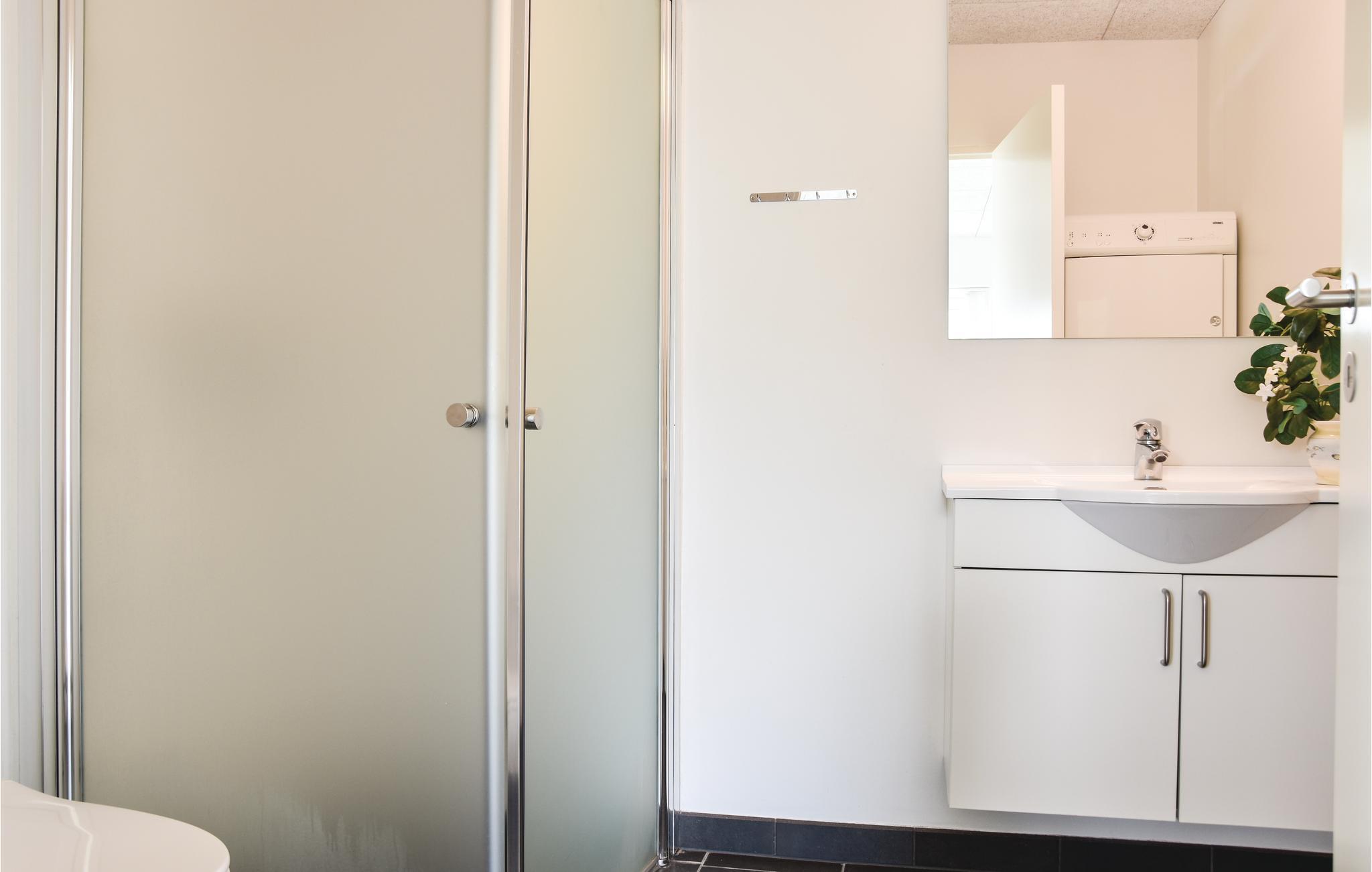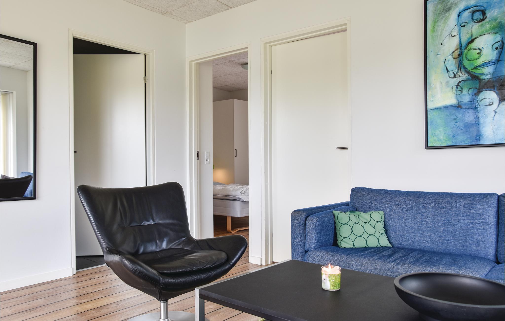 Huset er indrettet med 2 soveværelser samt badeværelse med bruser. Køkkenet og stuen ligger i åben forbindelse, og herfra er der udgang til terrassen.