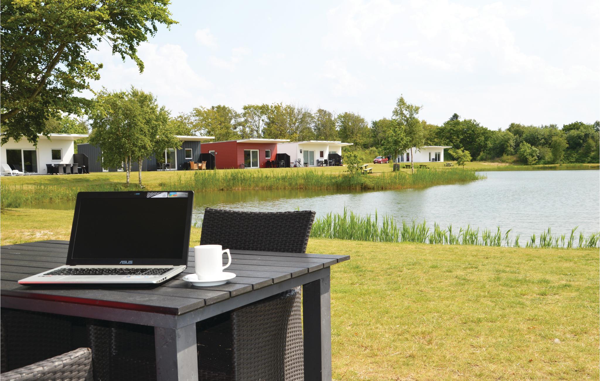 Dette hyggelige sommerhus ligger i Naturpark Vest i Hee og har direkte udsigt over en smuk fiskesø, der ligger lige ude foran terrassen.