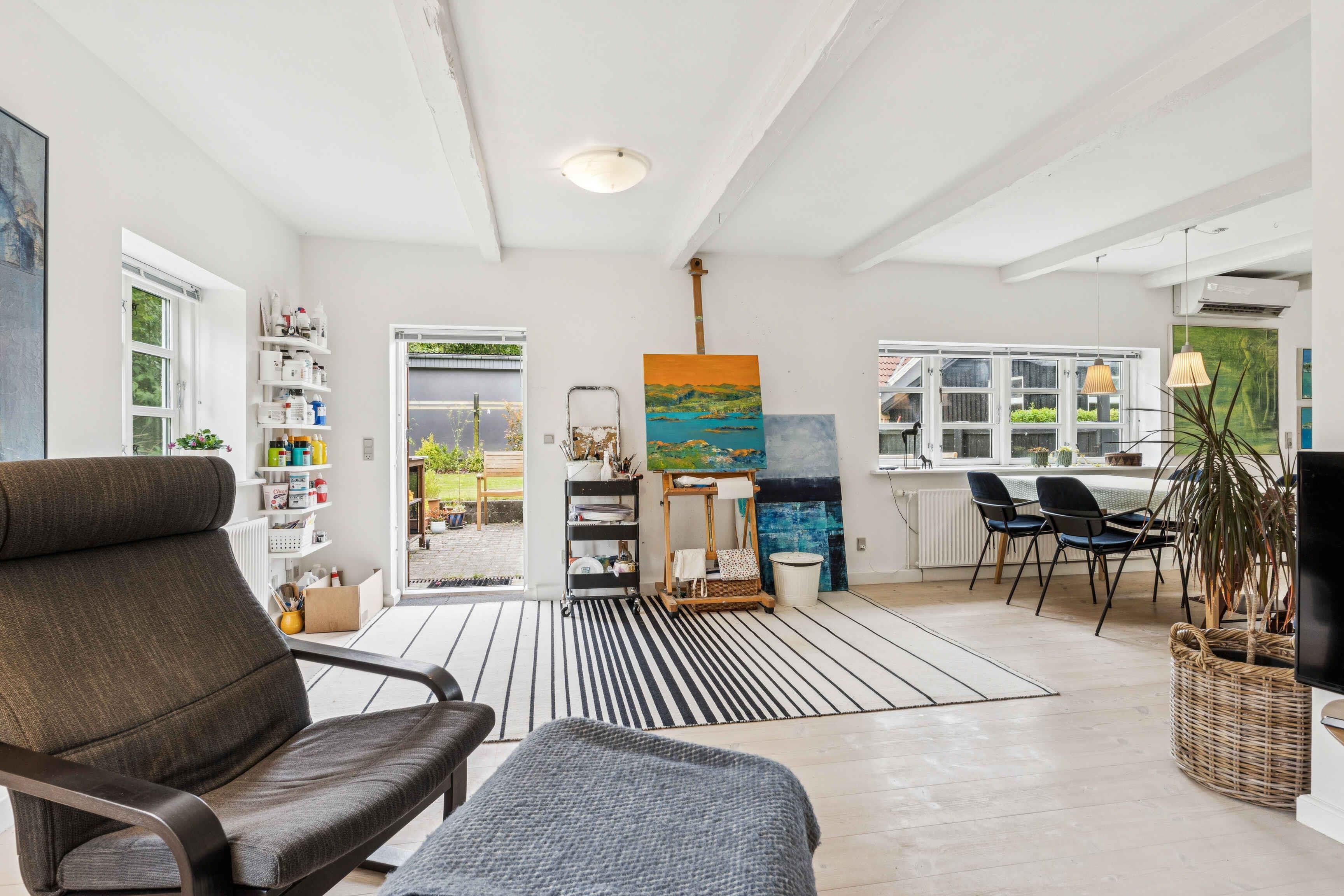 Dejligt sommerhus med plads til liv og ro. De lyse fællesrum fordeler sig over 98 kvadratmeter med et åbent køkken og et indbydende opholdsområde. Store vinduespartier skaber forbindelse til naturen, og terrassen forlænger sommerdage, mens I nyder frisk luft. Omgivelserne byder på Vesterhavets brede sandstrande, rolige fjordvande og fine klitlandskaber. Cykel- og vandrestier inviterer til opdagelser, mens windsurfing og kitesurfing lokker eventyrslystne. Nogle af Danmarks bedste golfbaner ligger i nærheden, og surfskoler tilbyder instruktion til både begyndere og øvede. Fjordsejlads og fuglekiggeri lokker naturelskere tæt på de karakteristiske marskarealer. Den charmerende købstad byder på brostensbelagte gader, hyggelige caféer og specialbutikker med lokalt håndværk. Markedsdage i havnen præsenterer friske råvarer, mens restauranter serverer lokale specialiteter. Kunstgallerier og små museer ligger inden for kort afstand, og events som musikfestivaler trækker gæster fra nær og fjern. Sommerhuset rummer tre hyggelige soveværelser med plads til seks personer. Den funktionelle planløsning sikrer privatliv og fleksibilitet for familier eller venner. Et veludstyret badeværelse og et ekstra gæstetoilet supplerer komforten, mens opbevaringspladsen holder orden på ferieturen. Obs, udlejes ikke til erhversmæssigt brug.