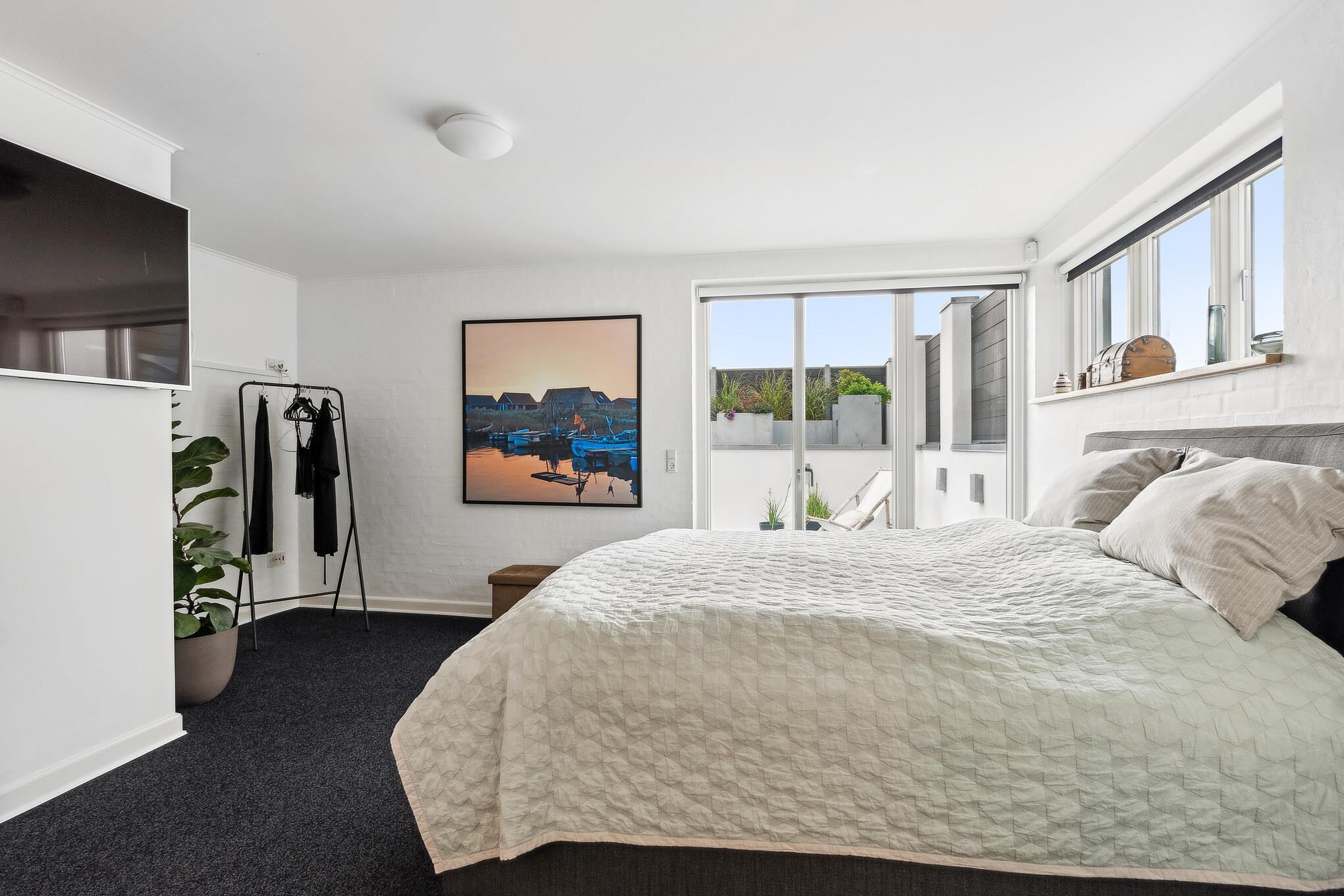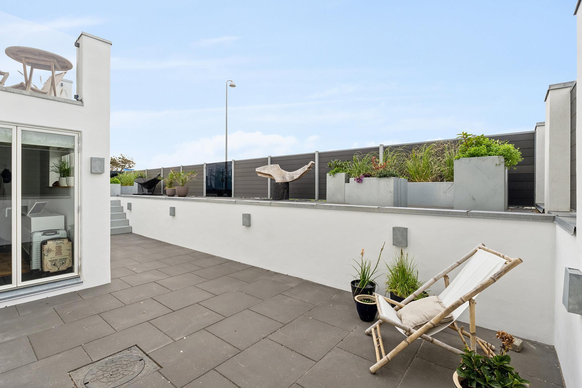 Udendørs venter flere skønne opholdsområder. Fra køkkenet er der direkte adgang til en hævet træterrasse mod vest med en betagende udsigt til fjorden – ideel til morgenkaffen eller et glas vin i solnedgangen. Trappen fører jer videre ned til en hyggelig, solrig gårdhave, som nemt kan indrettes med loungemøbler. Mod syd finder I endnu en terrasse, hvor I kan nyde solen det meste af dagen.