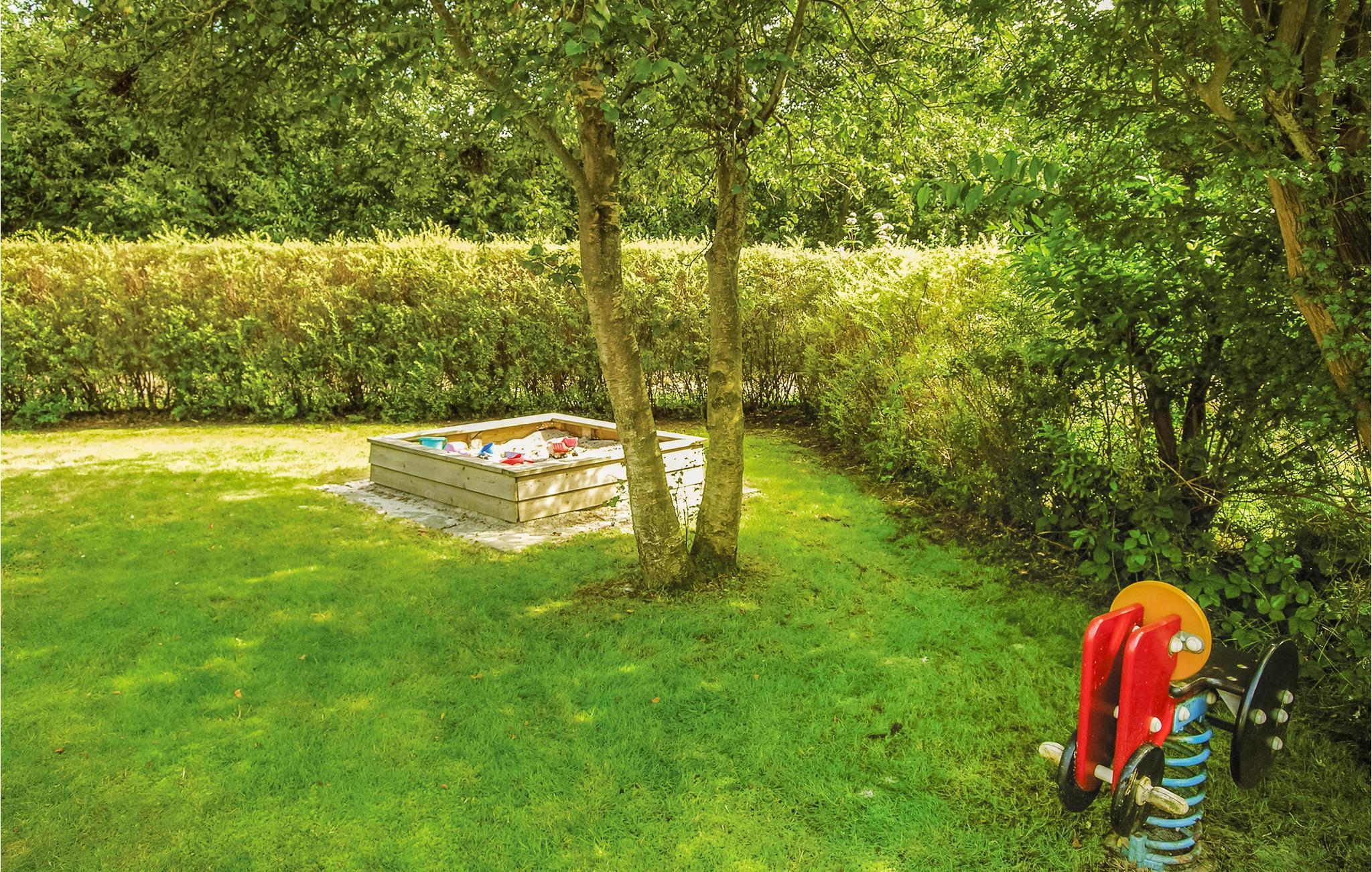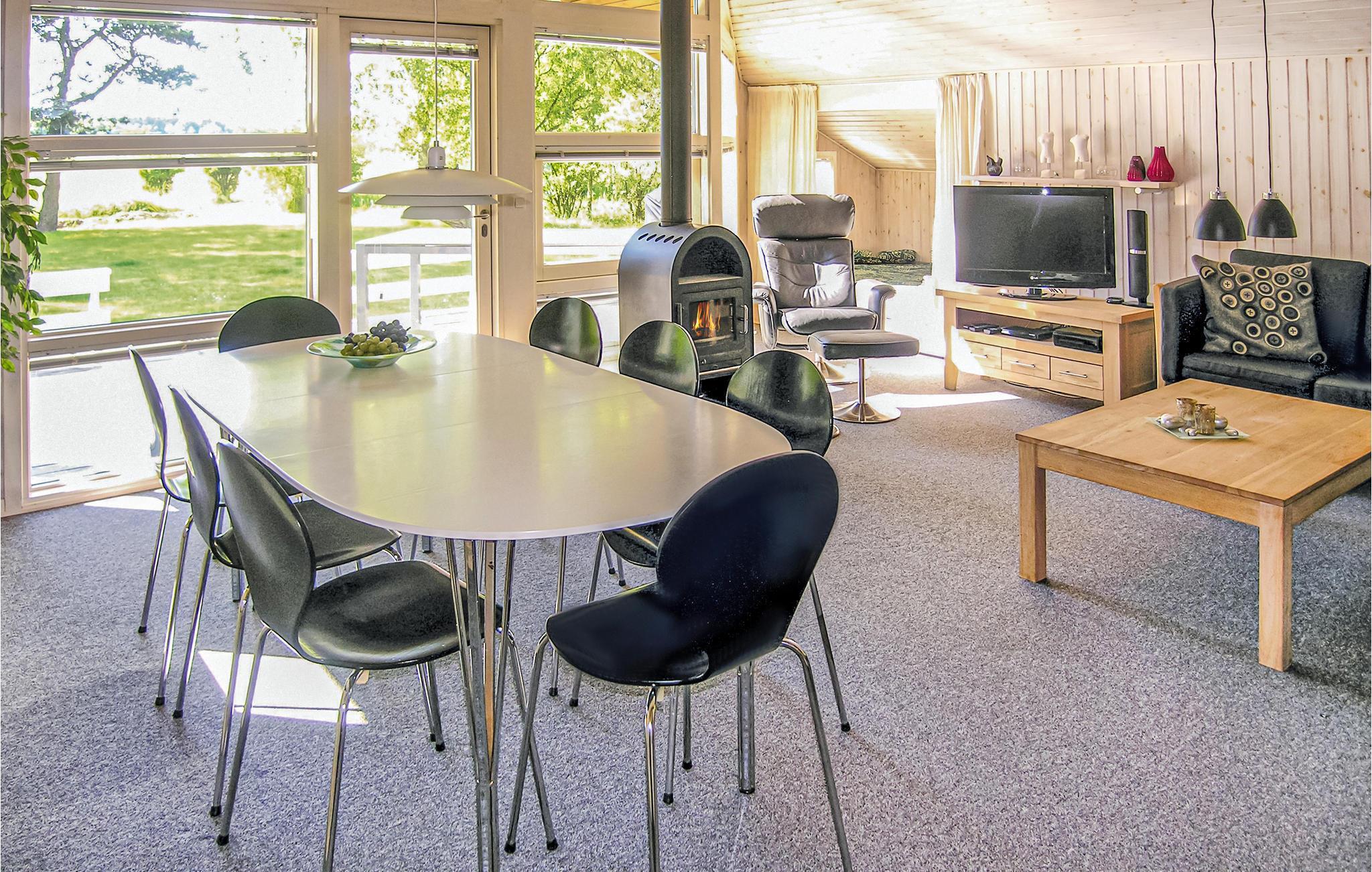 Dette feriehus opført i træ ligger i et af øens største sommerhusområder i en smuk plantage, hvor man kan få mange dejlige naturoplevelser og hvor der er adgang til den ca. 10 km lange sandstrand som tiltrækker både børnefamilier og naturelskere. Følger man den lille sti som går helt ud til *Ristinge Hale, kan man opleve den flotte udsigt over havet mod Marstal på Ærø - her ses også de små holme som findes mellem Langeland og Ærø. Især fugleinteresserede kan få sig nogle fantastiske oplevelser, hvis man kører sydpå fra Ristinge mod Tryggelev Nor. Sammen med Nørreballe Nor og udgør disse to nor et af Danmarks naturreservater, hvor man i de senere år har observeret ynglende havørene - nogle som ikke er blevet set i Danmark i en periode på over 100 år. 2 af husets i alt 8 sovepladser findes i en alkove i et hjørne af stuen.