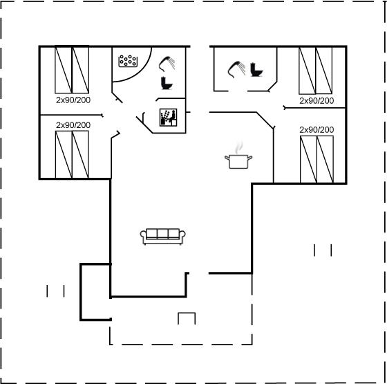 Der er i alt 4 soveværelser. Sovepladserne fordeler sig på: 8 sovepladser i enkeltsenge. Derudover er der 1 stk. barneseng.