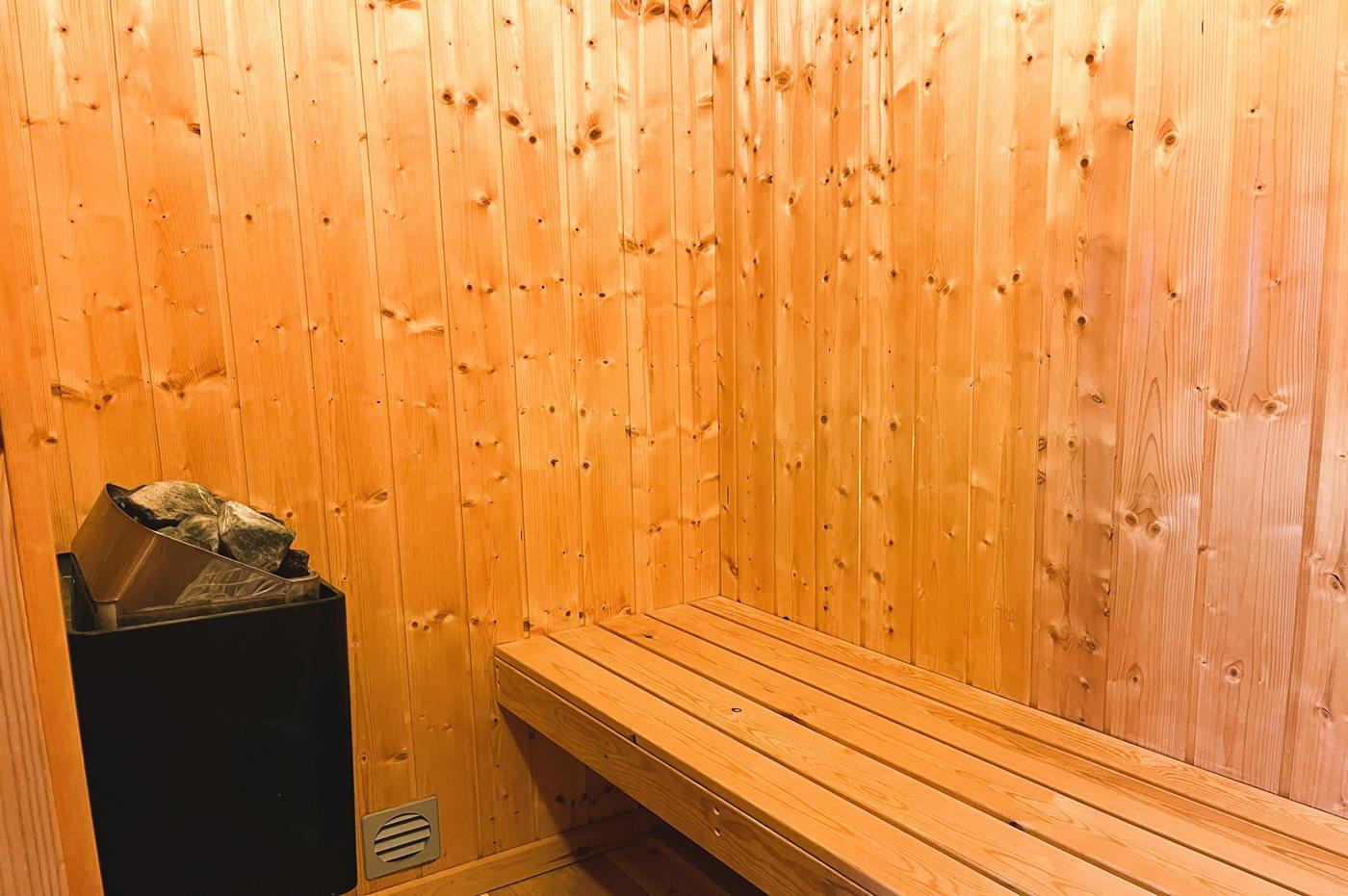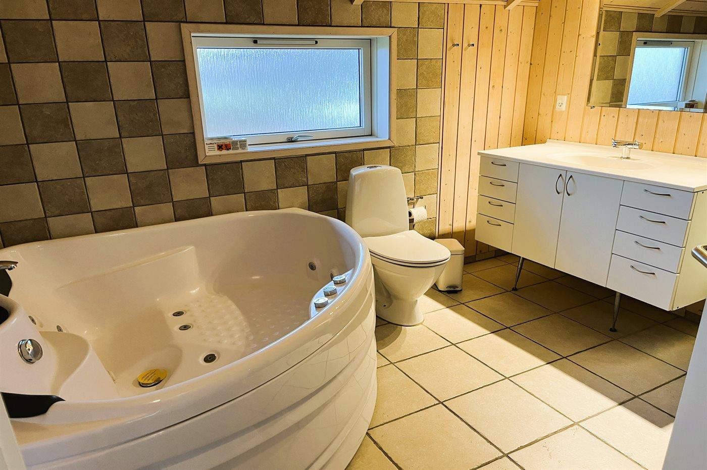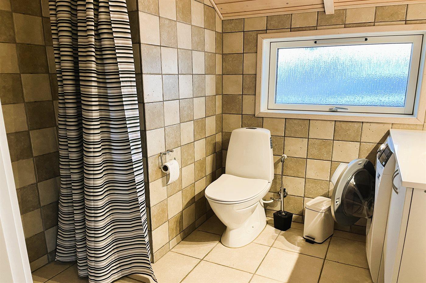 Der er 2 badeværelser med bruseniche og 2 toiletter. Der er gulvvarme på 2 badeværelser. I saunaen er der mulighed for afslapning.