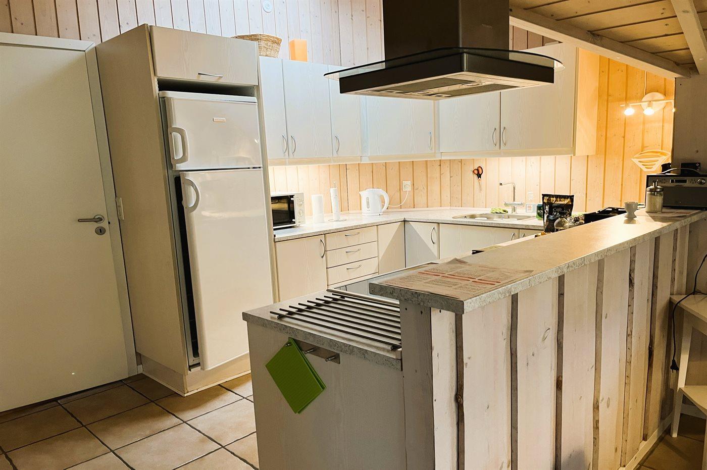 Køkkenet er udstyret med 1 køleskab. Der er 4 induktionskogeplader, varmluftovn, mikrobølgeovn samt opvaskemaskine.