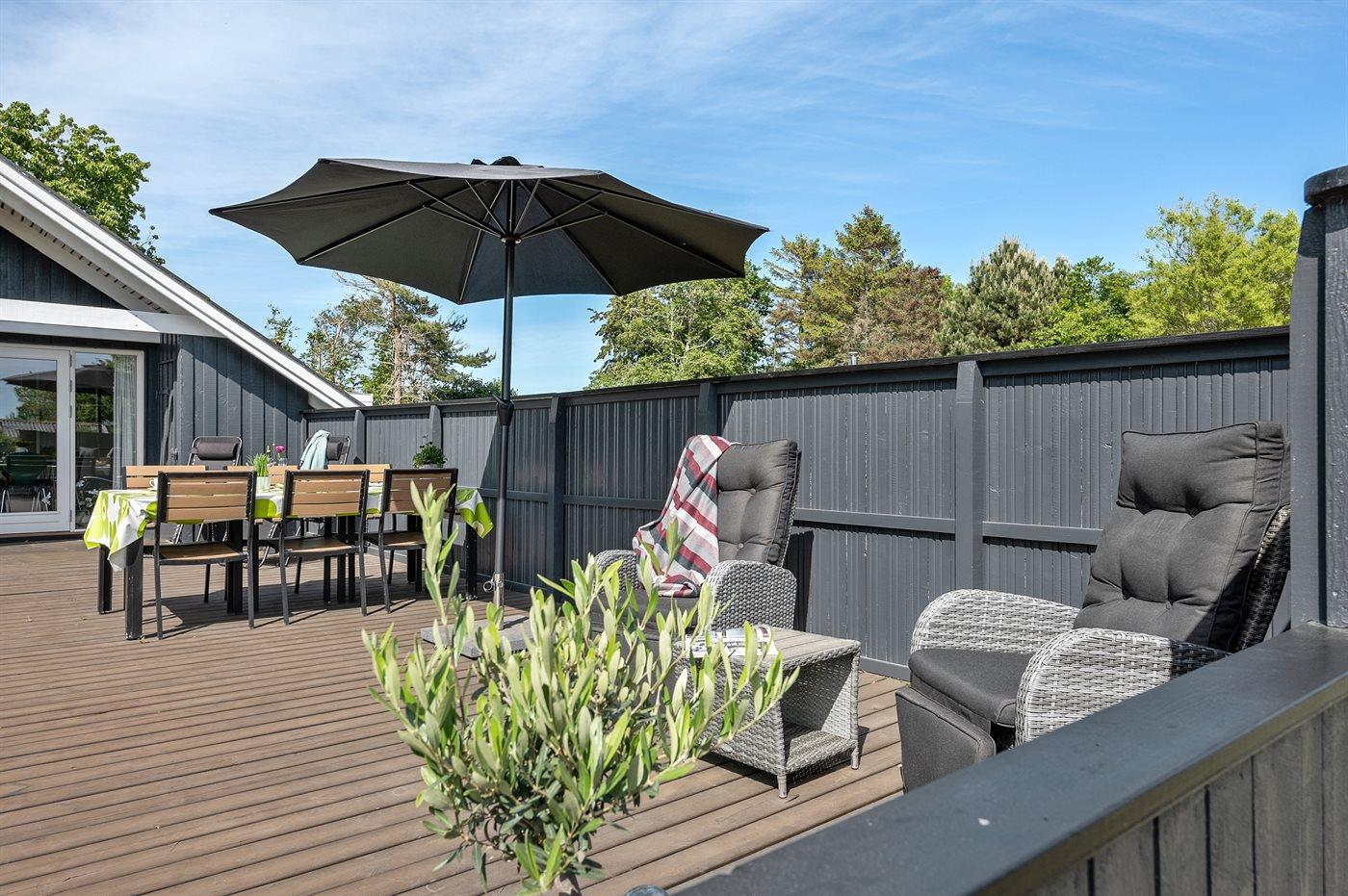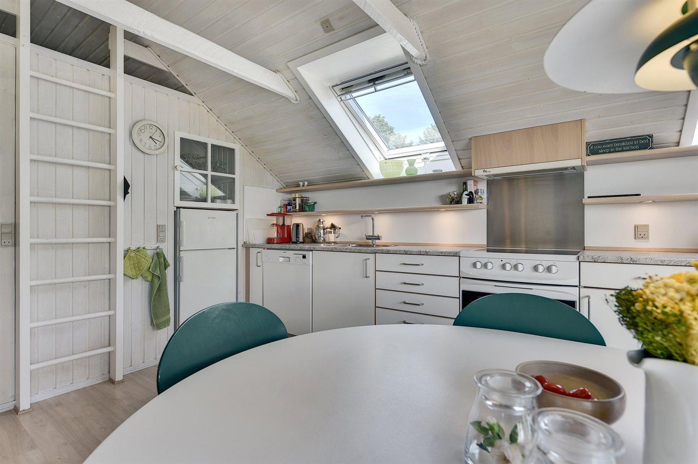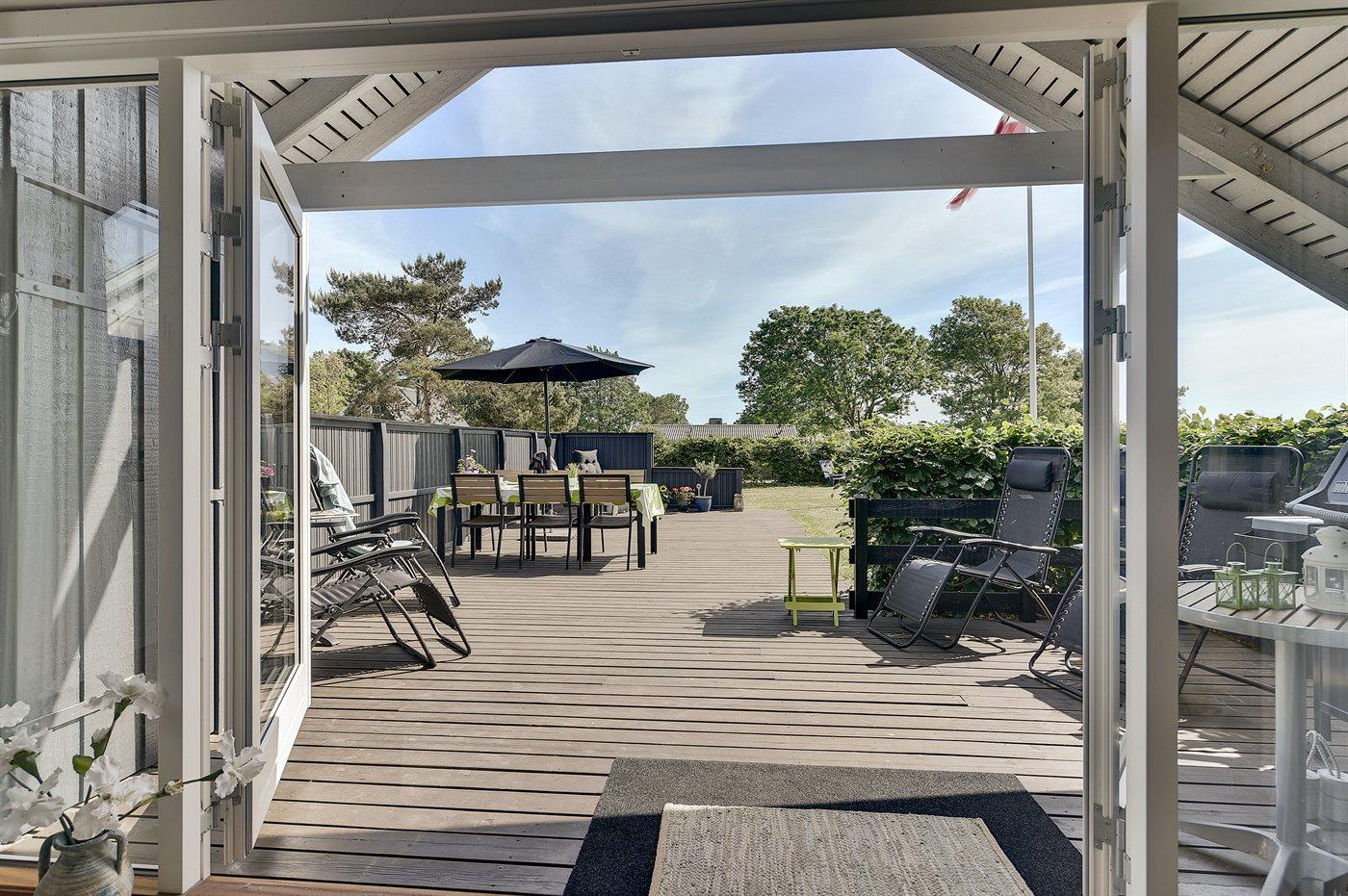 Pænt og velholdt sommerhus i træ, bygget i 1980 og renoveret i 2011, beliggende 700 m. fra vandet på en dejlig velanlagt havegrund med havkig fra både hus og grund. Til huset hører en solrig, delvist overdækket og afskærmet terrasse med havemøbler, hvorfra der er en skøn udsigt. Indvendigt fremtræder huset lyst og venligt med lofter til kip og en hyggelig indretning. Det åbne køkken er bl.a. udstyret med opvaskemaskine, varmluftovn, komfur med keramiske kogeplader samt fryser. I opholdsstuen findes der brændeovn, TV, DVD-afspiller, PlayStation2 spillekonsol samt radio. Sovepladserne fordeler sig på 1 værelse med dobbeltseng og 1 værelse med 2 enkeltsenge i huset samt 2 sovepladser i annekset i henholdsvis en enkeltseng eller i en køjeseng. Husets badeværelse har bruseniche. Der er installeret energibesparende varmepumpe i huset og gulvbelægningen er af både træ, klinker og linoleum. Til børnene findes der gynge på grunden. Et skønt sommerhus beliggende i et naturskønt område tæt på badestrand og med gode fiskemuligheder i nærheden.