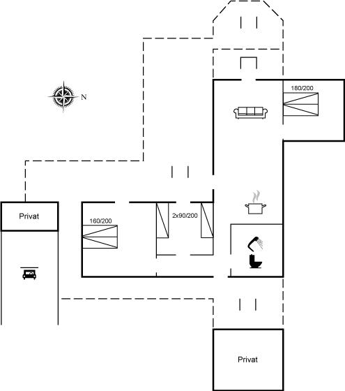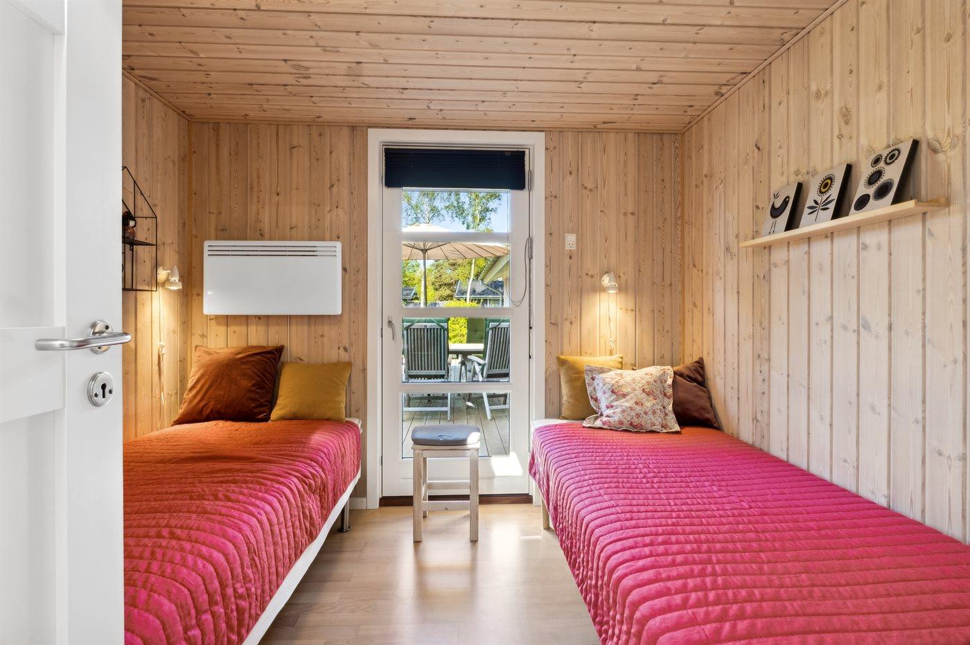Der er i alt 3 soveværelser. Sovepladserne fordeler sig på: 4 sovepladser i dobbeltsenge. 2 sovepladser i enkeltsenge. Derudover er der 1 stk. barneseng.