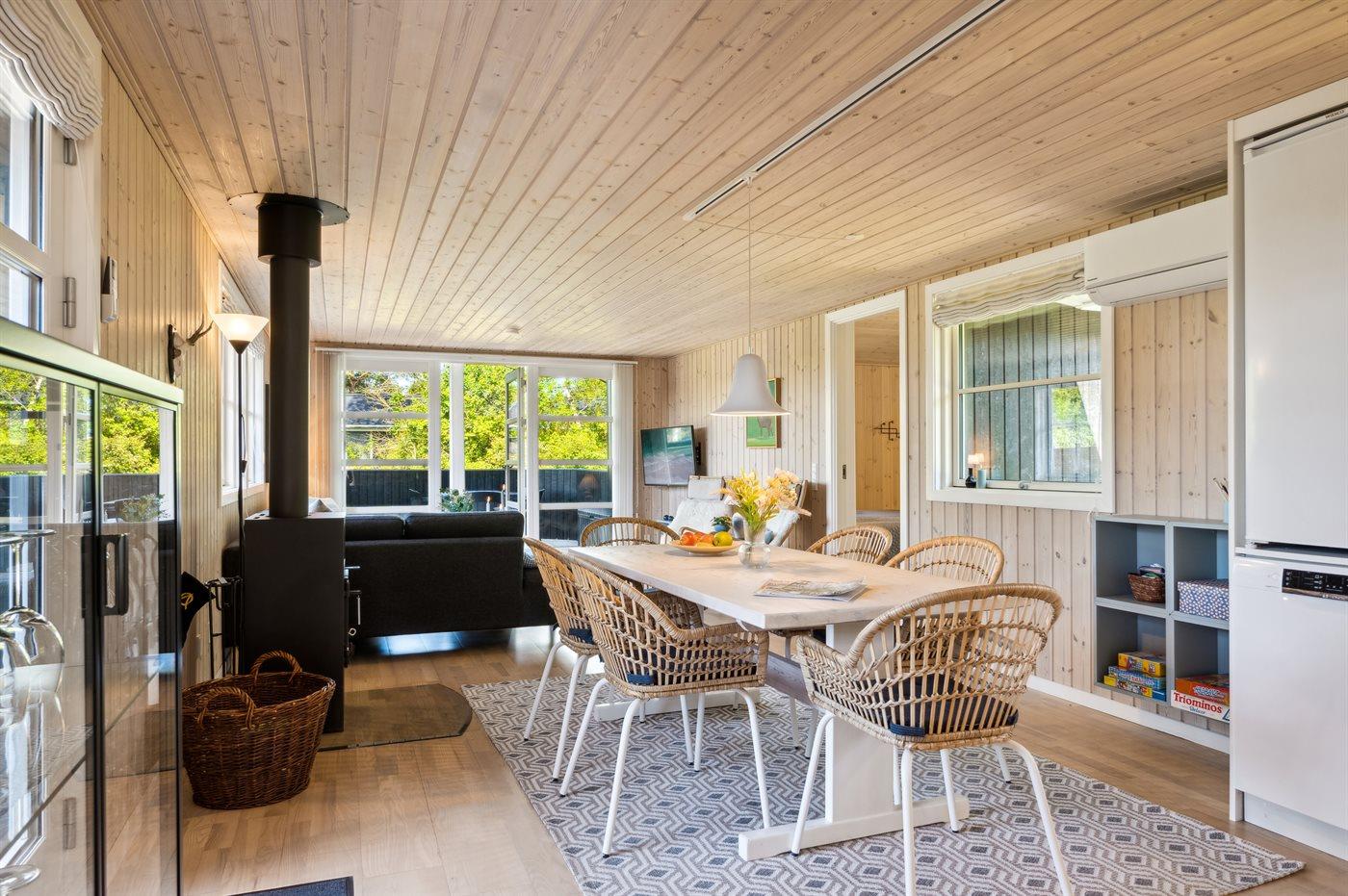 Sommerhuset egner sig til 6 personer samt 1 barn op til 3 år. Ferieboligen er på 90 m² og er bygget i 1987. I 2020 gennemgik ferieboligen en renovering. Det er ikke tilladt at medbringe husdyr. Ferieboligen er udstyret med 1 energibesparende luft til luft varmepumpe. Ferieboligen har vaskemaskine. Tørretumbler. Frysekapacitet på 20 liter. Der er desuden brændeovn. Til de små er der 1 stk. barnestol.