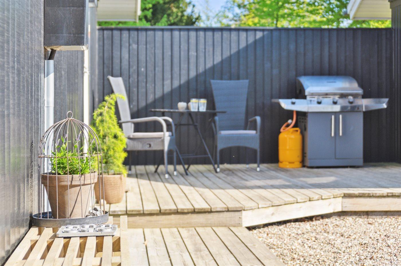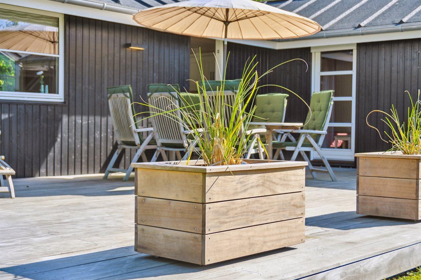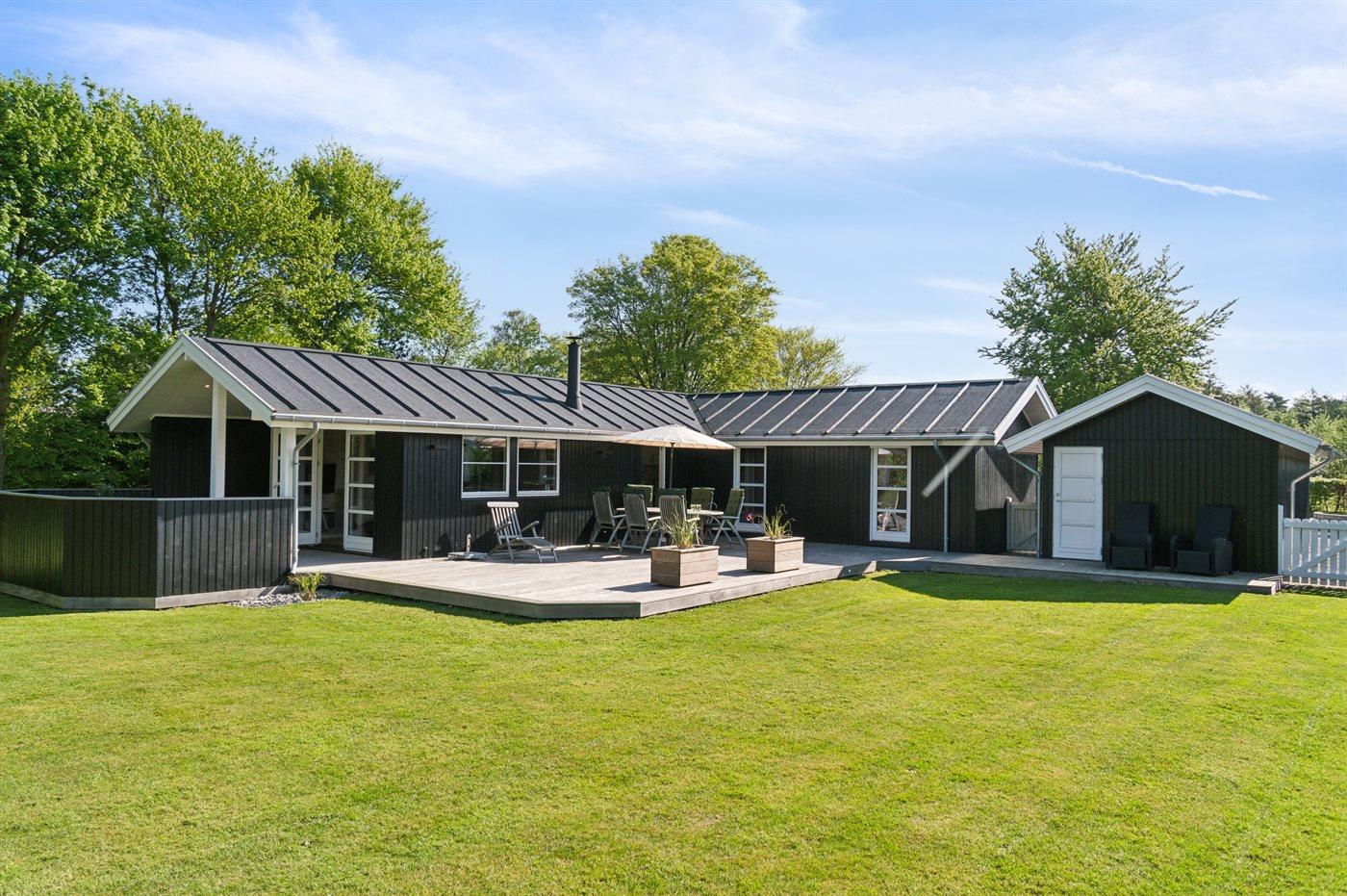 Ferieboligen er beliggende på en 1200 m² stor havegrund. Der er 700 m til havet. Nærmeste forretning er beliggende i en afstand af 2800 m. Der er en golfbane i en afstand af 5600 m. Til ferieboligen hører åbent terrasseareal. Desuden er der overdækket terrasse. Grill til rådighed. Der er carport til rådighed. Parkering ved ferieboligen.