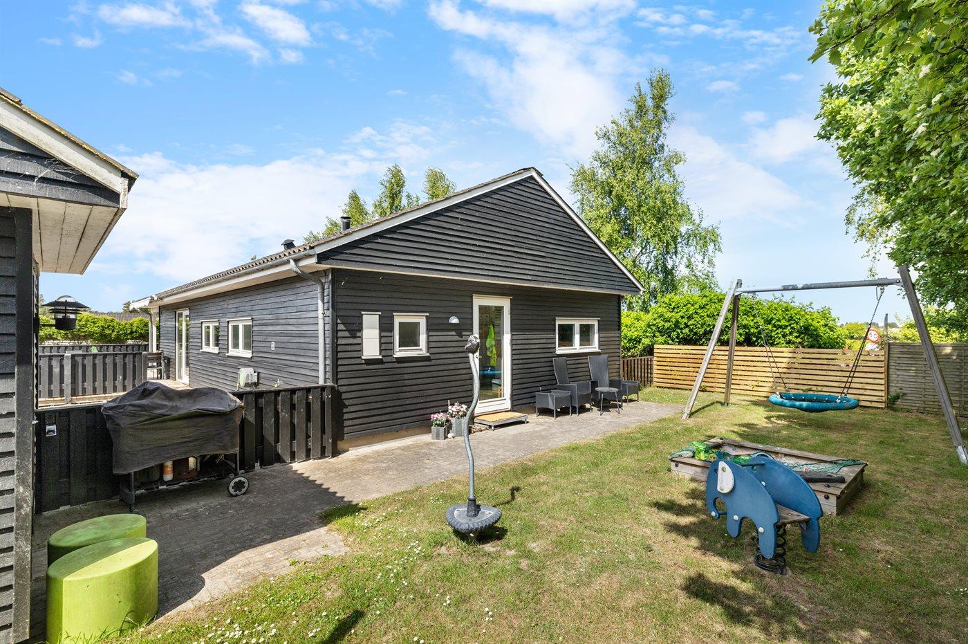 Ferieboligen er beliggende på en 1590 m² stor havegrund. Der er 700 m til havet. Nærmeste forretning er beliggende i en afstand af 2900 m. Til ferieboligen hører åbent terrasseareal. Desuden er der overdækket terrasse. Gynge. Sandkasse. Grill til rådighed. Parkering ved ferieboligen.
