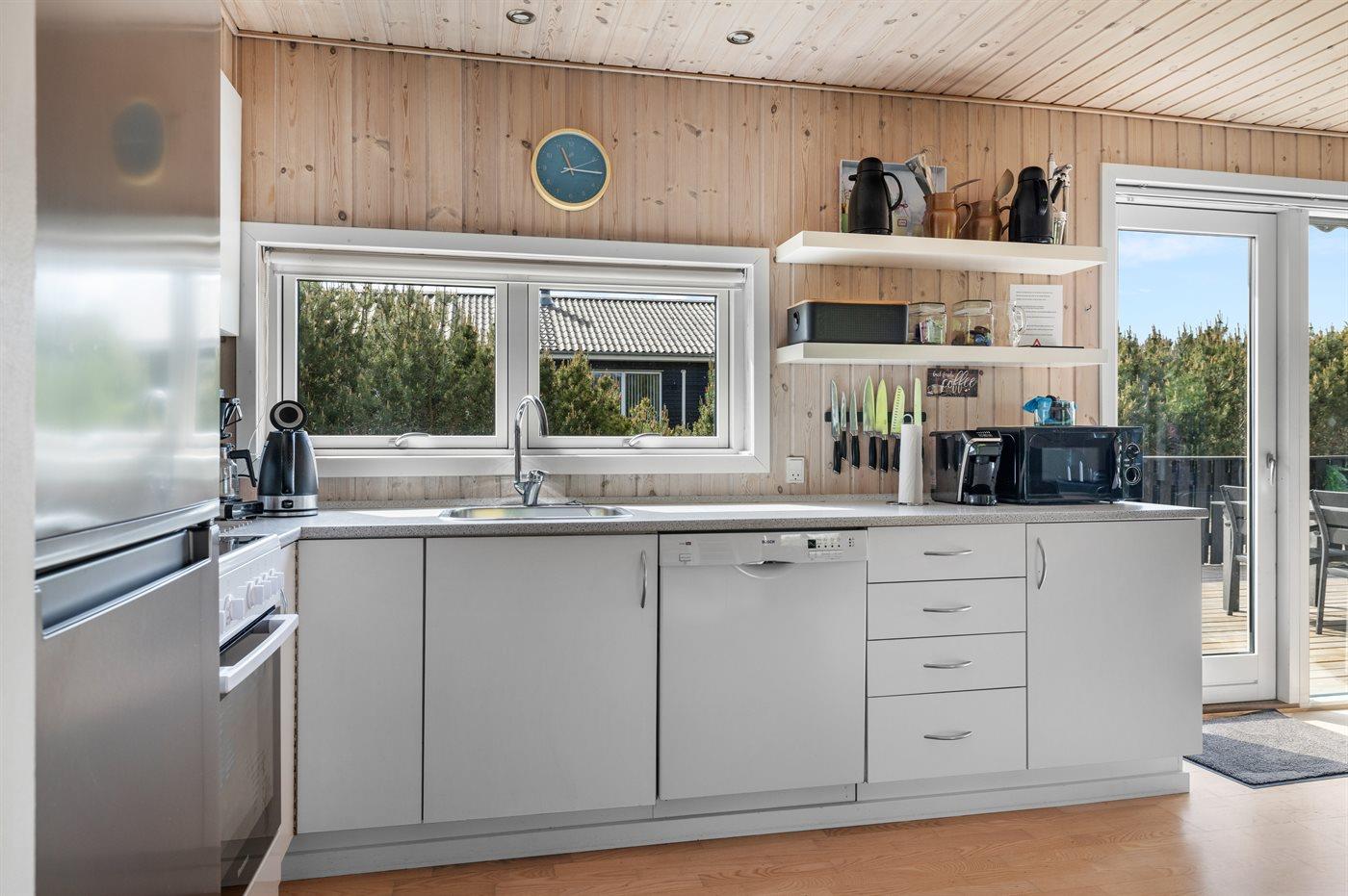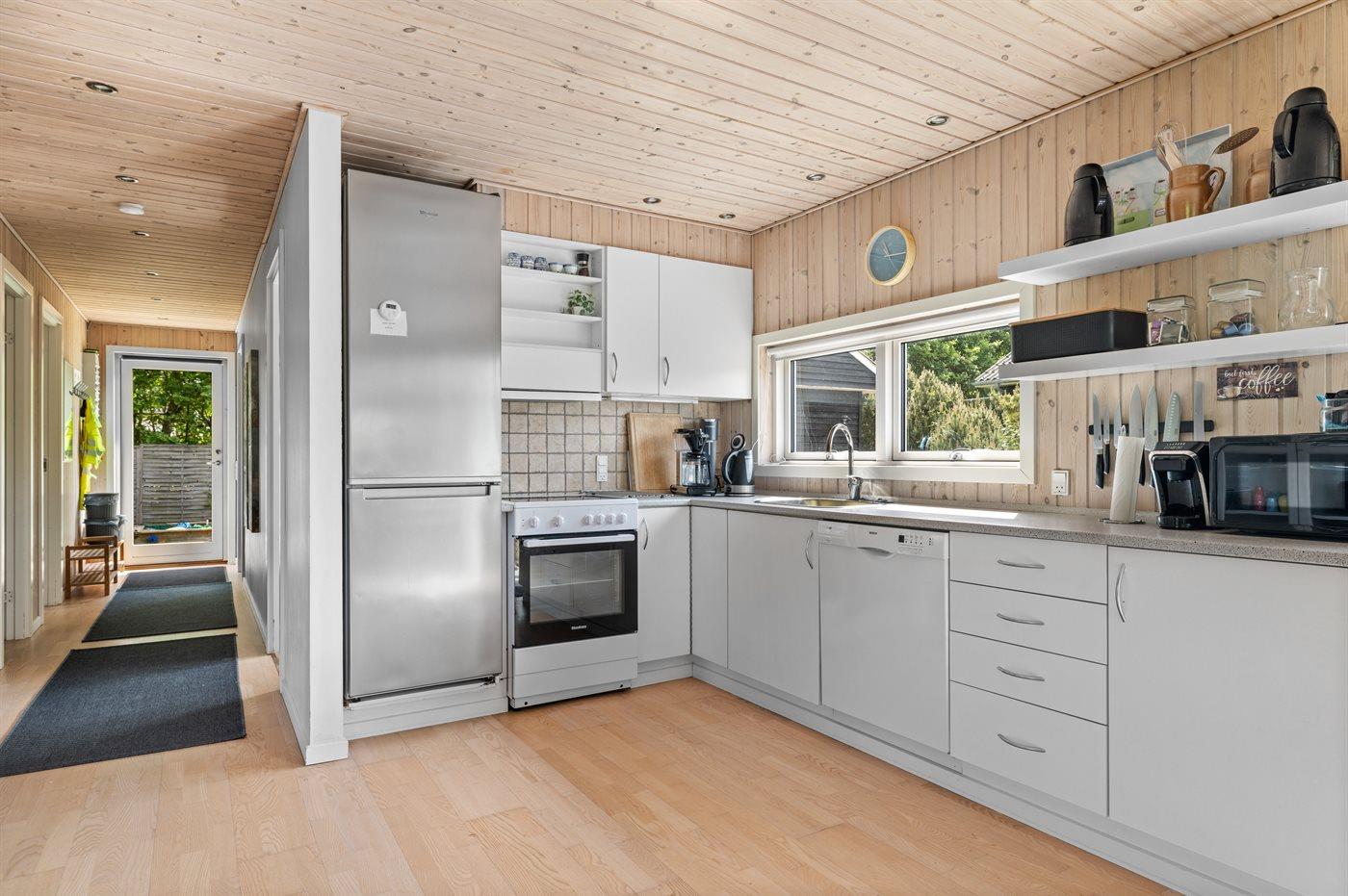 Køkkenet er udstyret med 1 køleskab. Der er 4 keramiske kogeplader, varmluftovn, mikrobølgeovn samt opvaskemaskine.