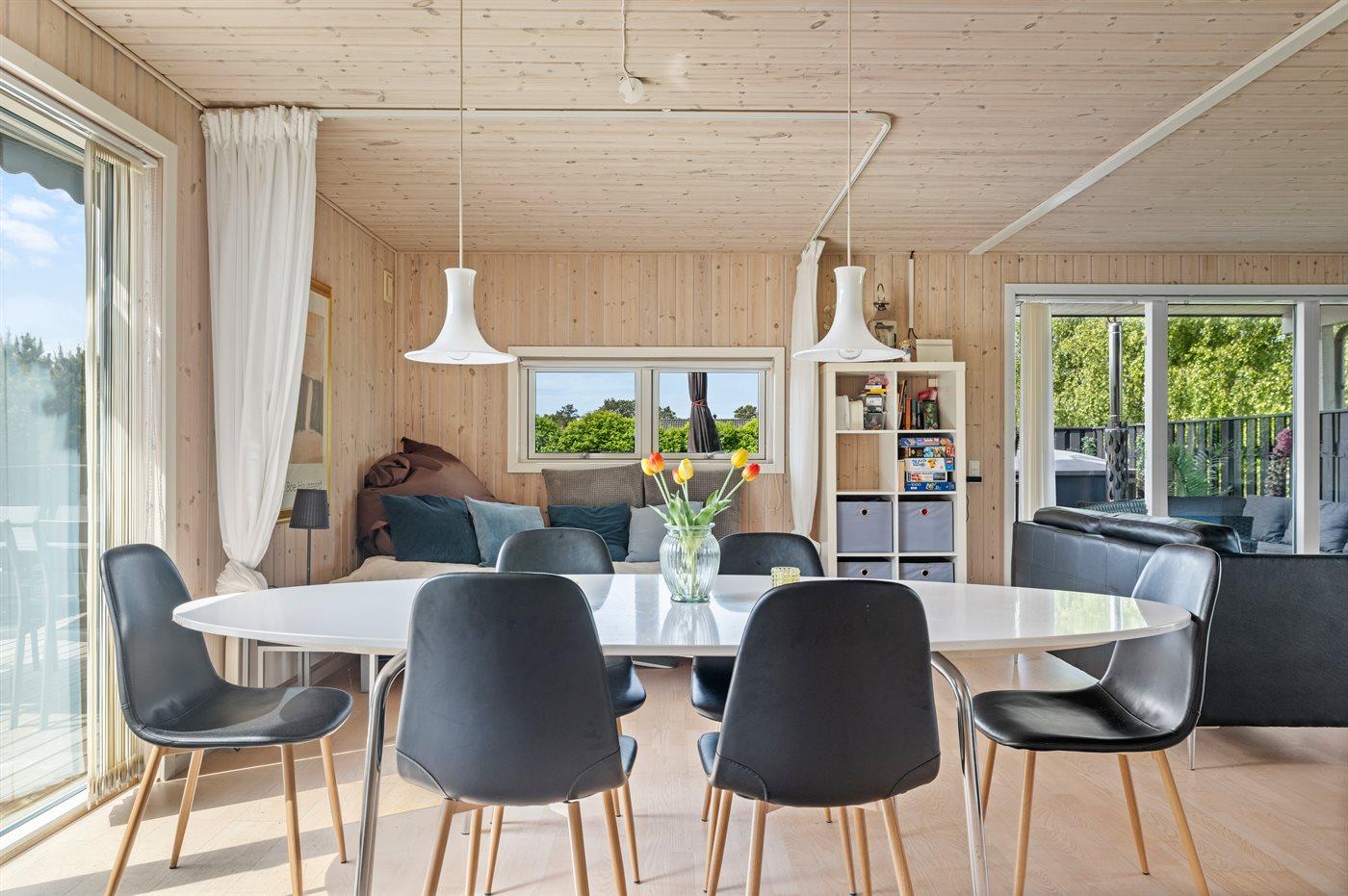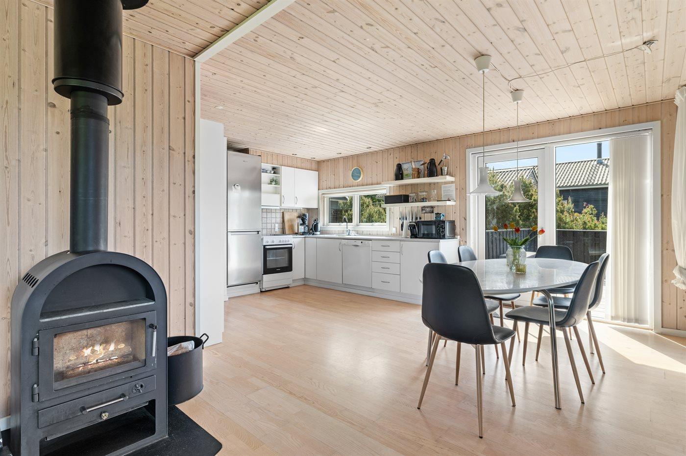 Sommerhuset egner sig til 8 personer samt 1 barn op til 3 år. Ferieboligen er på 100 m² og er bygget i 2006. Det er tilladt at medbringe 2 husdyr. Ferieboligen er udstyret med 1 energibesparende luft til luft varmepumpe. Ferieboligen har vaskemaskine. Tørretumbler. Frysekapacitet på 70 liter. Der er desuden brændeovn. Til de små er der 1 stk. barnestol.