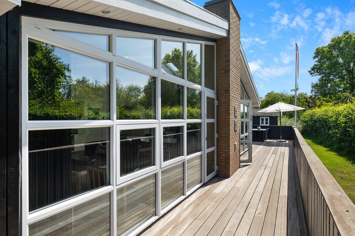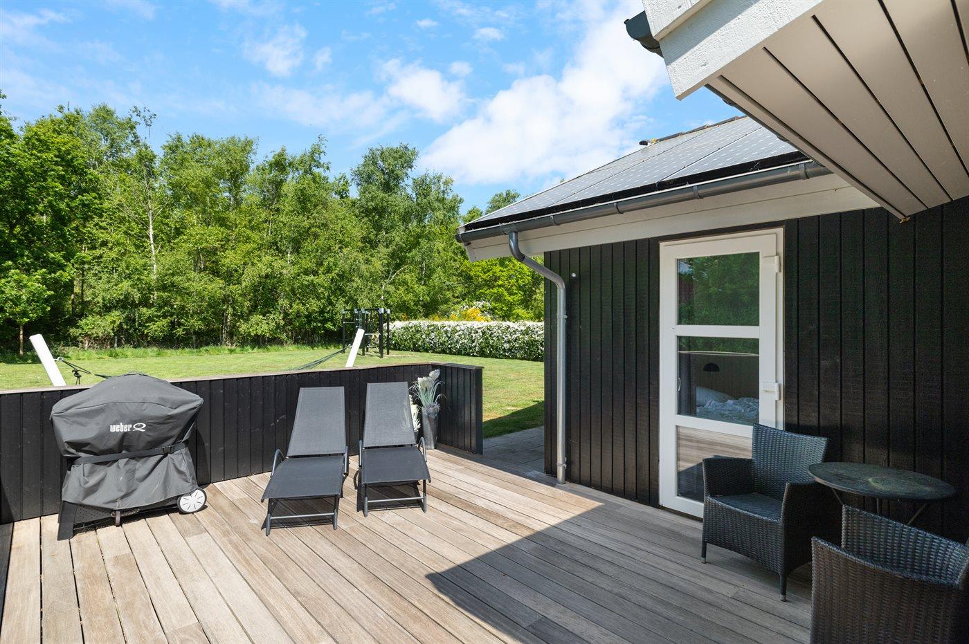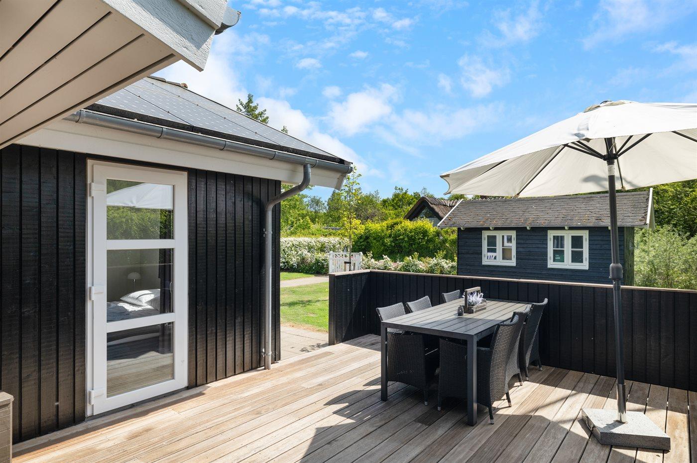 Stort sommerhus med spa, sauna og flere terrasser nær børnevenlig strand i Ristinge.