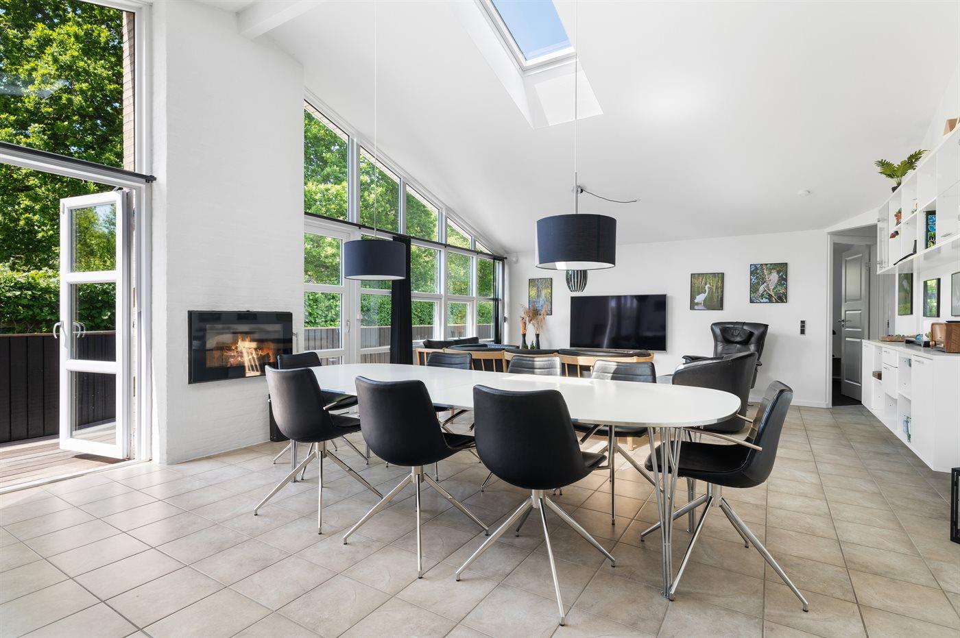 Huset er godt indrettet og har et stort åbent og lyst køkken-alrum, hvor der er åbnet op til kip, så der er et flot lysindfald fra de store sydvest-vendte vinduespartier. Omkring huset findes der flere terrasser, således der altid er mulighed for at finde et sted med sol. I den store have er der god plads til udendørs aktiviteter.