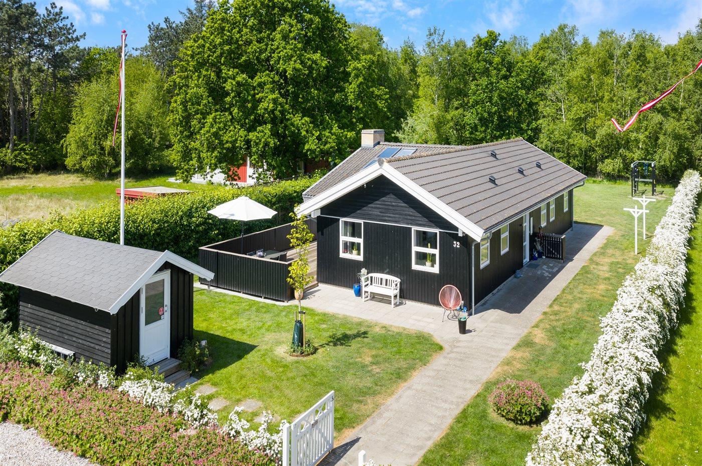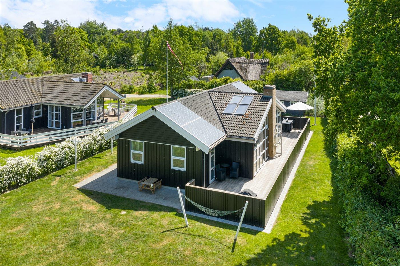 Sommerhuset egner sig til 8 personer samt 1 barn op til 3 år. Ferieboligen er på 118 m² og er bygget i 2012. Det er tilladt at medbringe 2 husdyr. Ferieboligen er udstyret med 1 energivenlig luft til luft varmepumpe. Der er gulvvarme i alle klinkegulve. Ferieboligen har vaskemaskine. Tørretumbler. Frysekapacitet på 100 liter. Der er desuden brændeovn. Til de små er der 2 stk. barnestole.