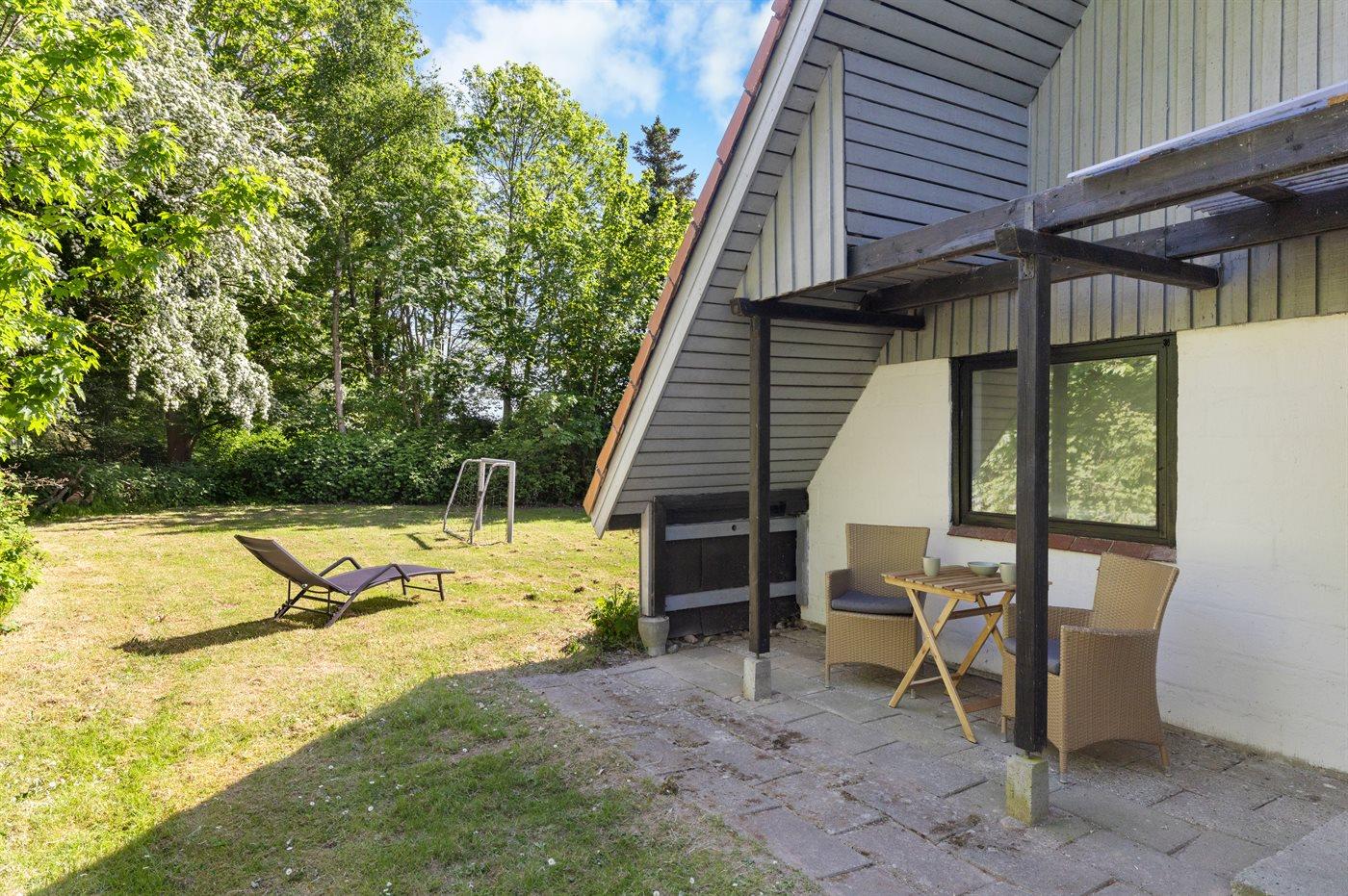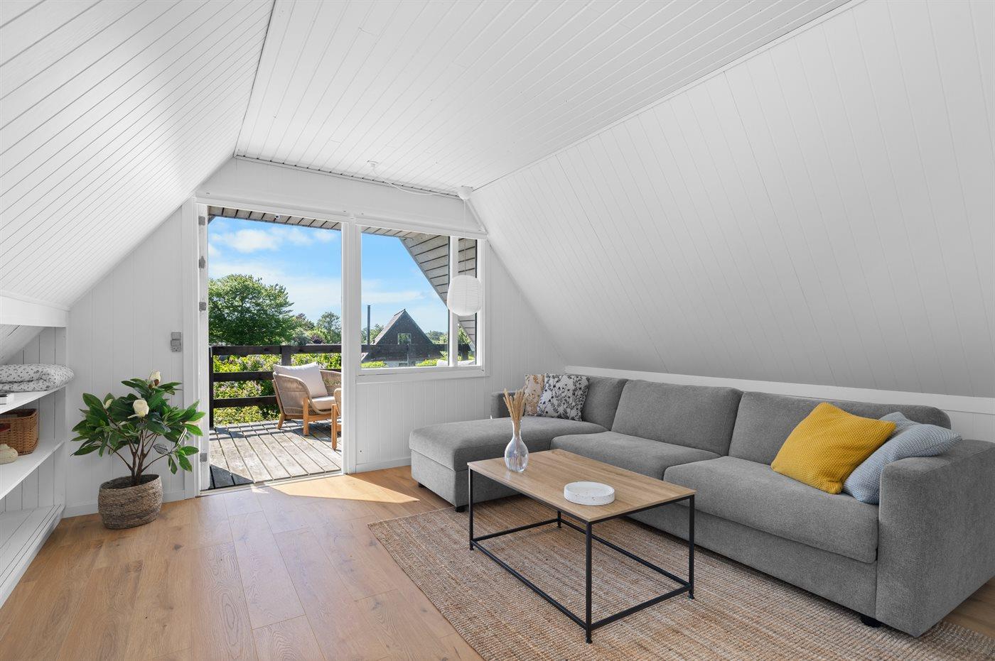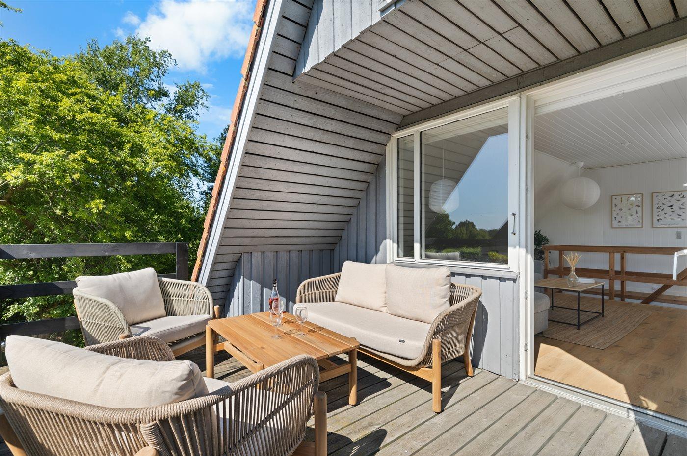 Huset er hyggeligt indrettet og har både terrasse foran og bag huset. På 1. salen er der stue med udgang til altan med lækre loungemøbler, hvorfra der er udsigt ud over området.