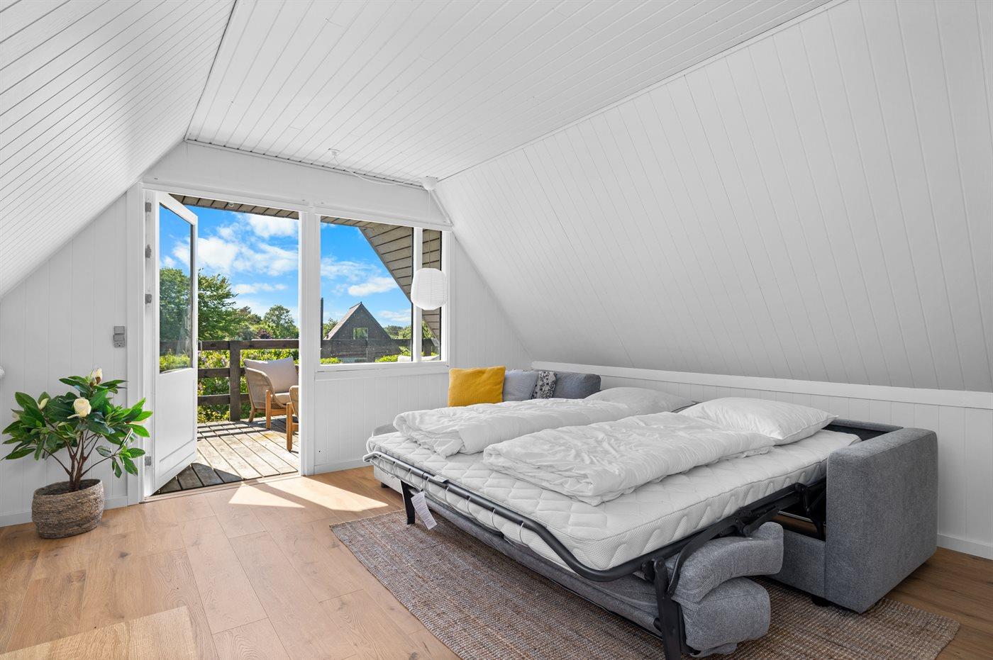 Der er i alt 2 soveværelser. Sovepladserne fordeler sig på: 4 sovepladser i enkeltsenge. 2 sovepladser i sovesofa (dobbelt). 2 af disse sovepladser befinder sig i stuen. Derudover er der 1 stk. barneseng.