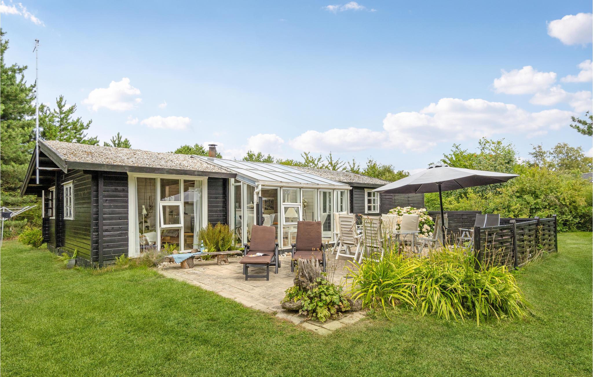 Hyggeligt fritidshus nær stranden på Langeland med åbent terrasse, brændeovn og tæt på aktiviteter og natur.