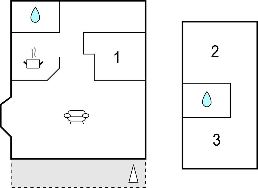 Opholdsstue/køkken - 2 Sovepladser. (Sofa, madras eller lignende).