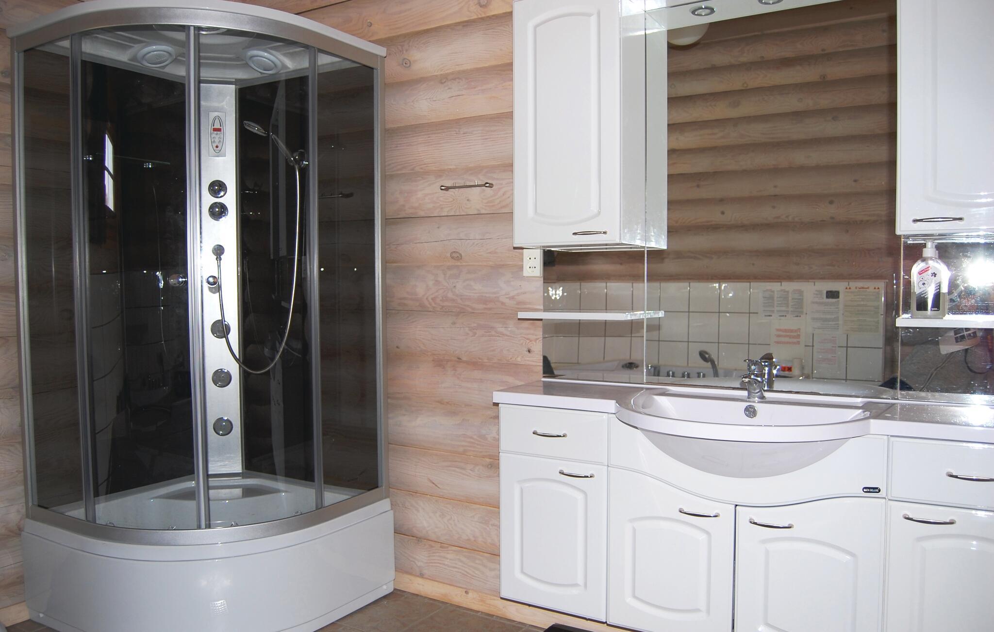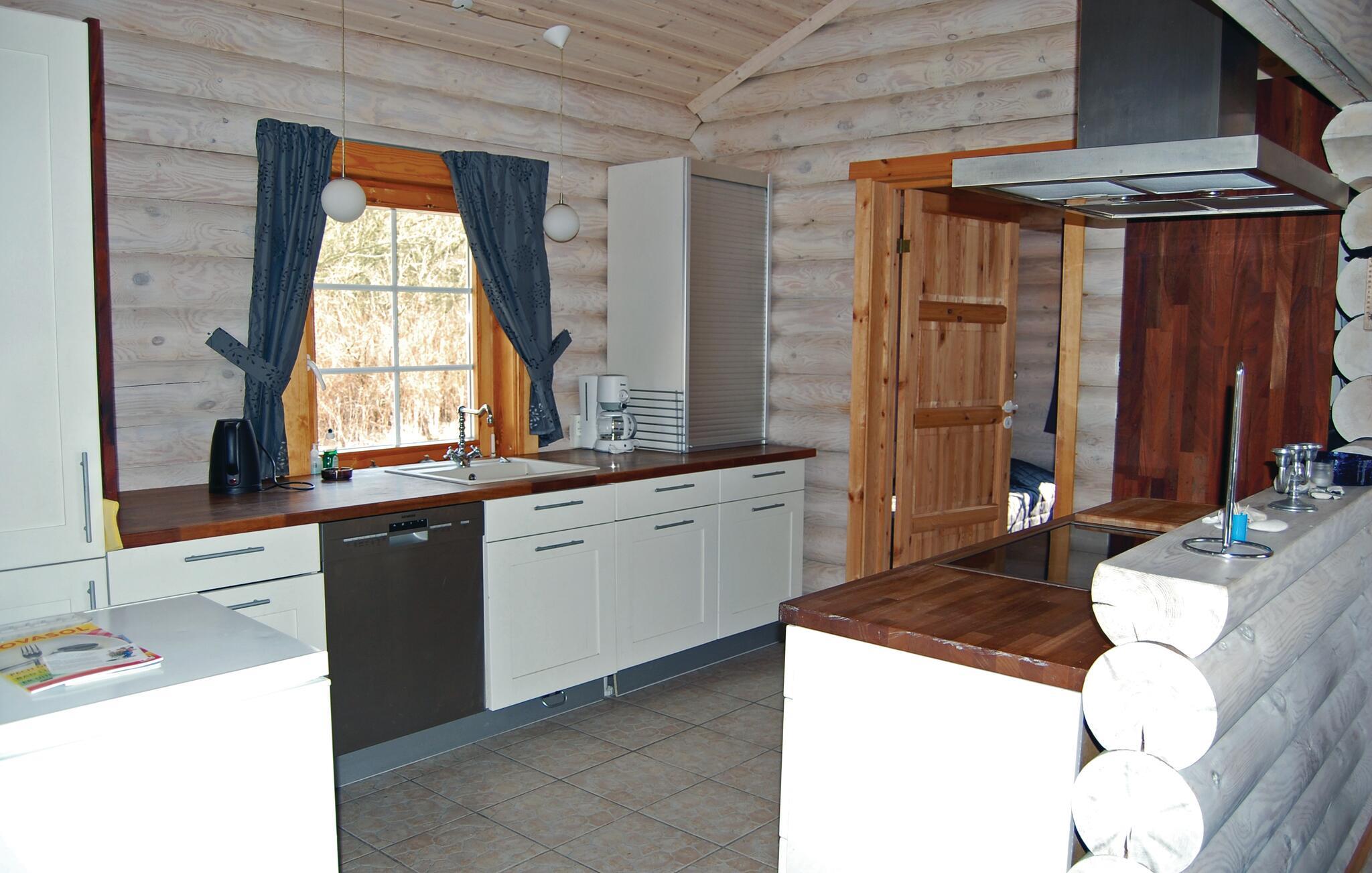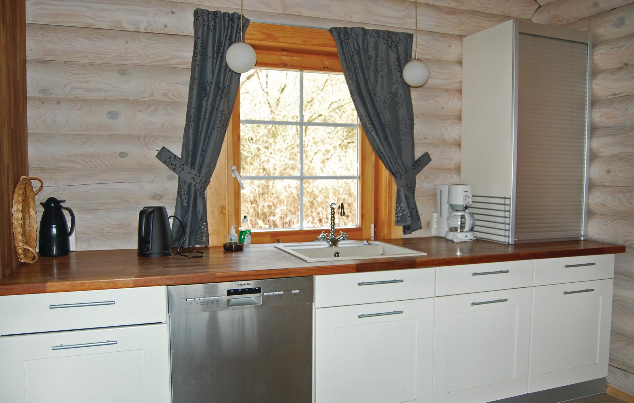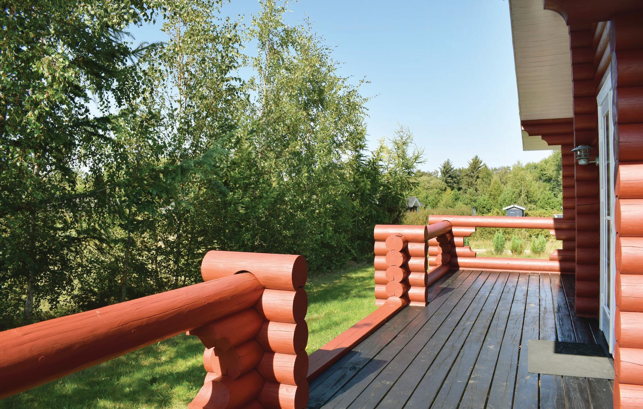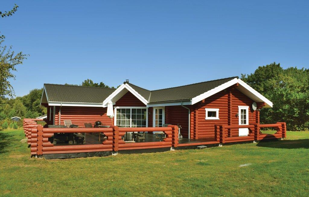 Rummeligt russisk bjælkehus nær Langelands bedste sandstrand med moderne faciliteter og stor terrasse.
