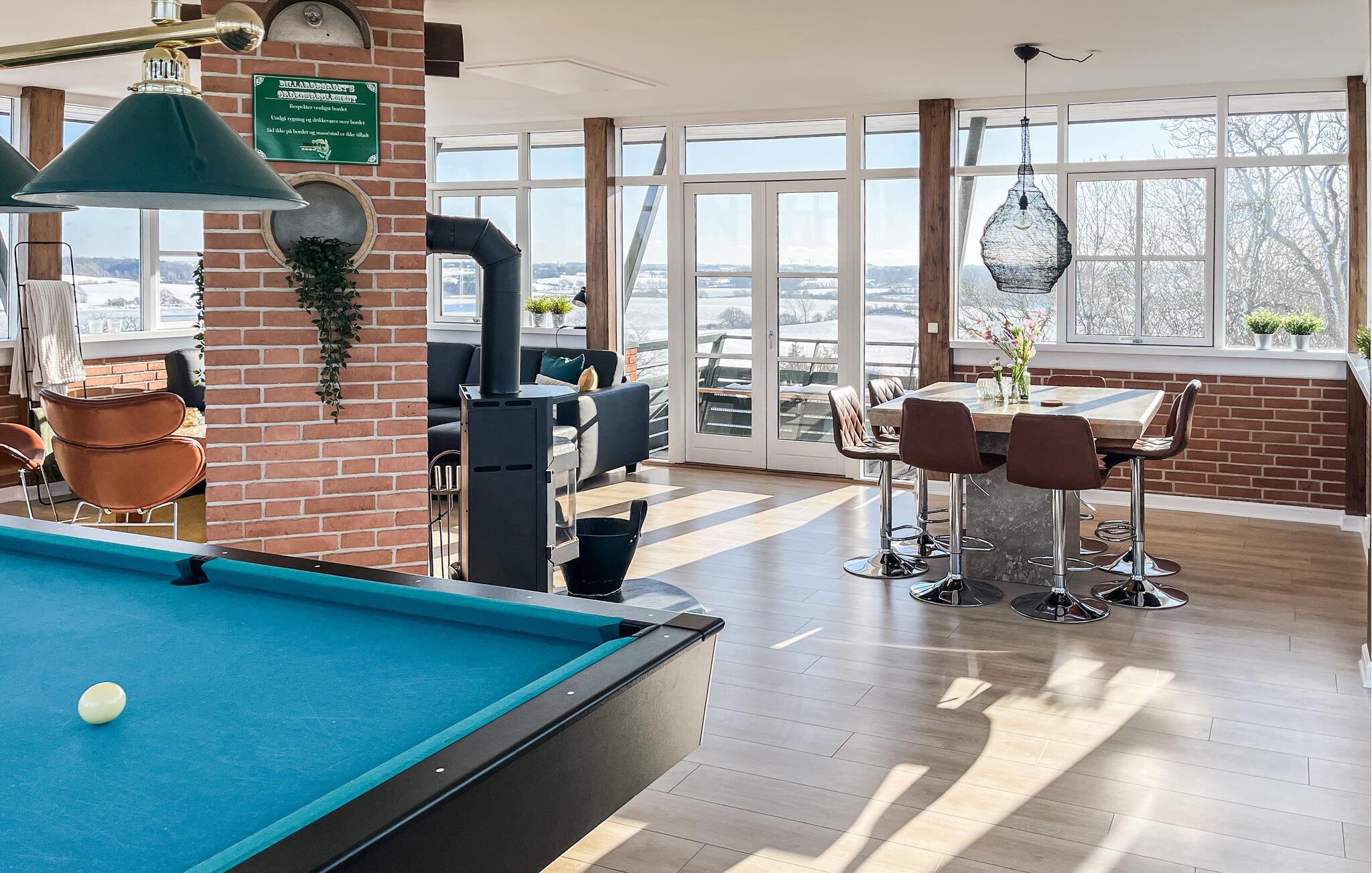 Hesselbjerg Mølle' kaldes denne ejendom i folkemunde. Ejendommen ligger på en bakketop på et af Langelands højeste punkter på et skrånende terræn og er bygget i 3 plan. Huset er bygget af kvalitetsmaterialer. Fra 'skylight' stuen på 2. sal er der udgang til 3 altaner og panoramaudsigt over store dele af Sydlangeland og Tryggelev Nor, som fuglene oplever som et rigtigt paradis. På denne etage er der også et Søren Søgaard 1/2 match billardbord. Ejendommen byder ligeledes på hele 3 brændeovne, 1 på hver etage, som i vinterperioden spreder ekstra hygge og varme. Den tidligere garage er indrettet som aktivitetsrum med mange muligheder for den aktive feriegæst. Huset har træ- og klinkegulve og løse tæpper. Dette er en spændende ejendom.