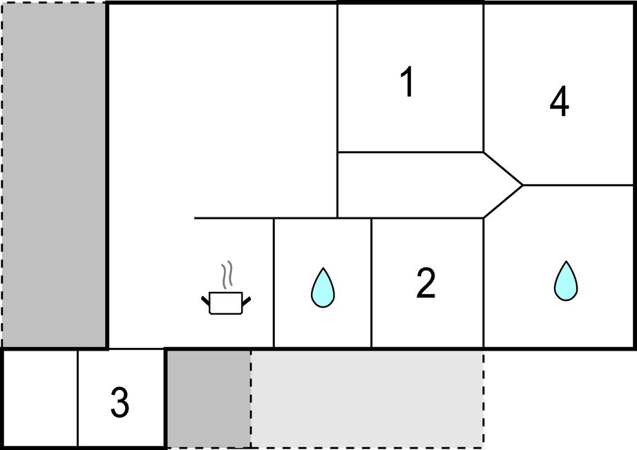 Køkkenet har v/k vand