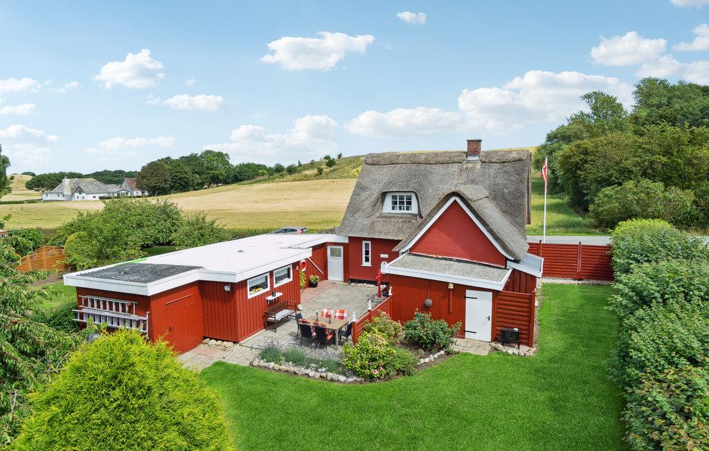 Drømmer I om afslappende feriedage med ro og udsigt over marker? Så er dette charmerende stråtækte feriehus måske lige netop det rette for jer.