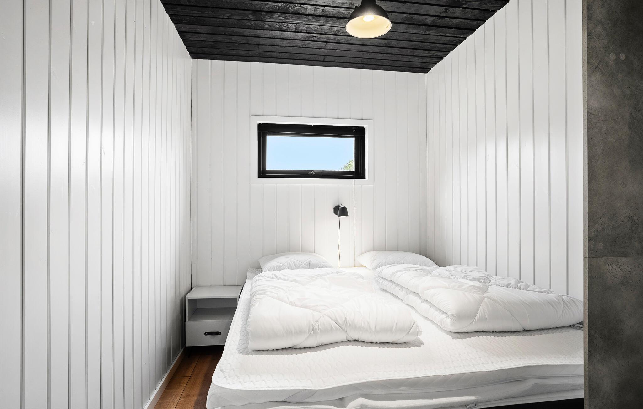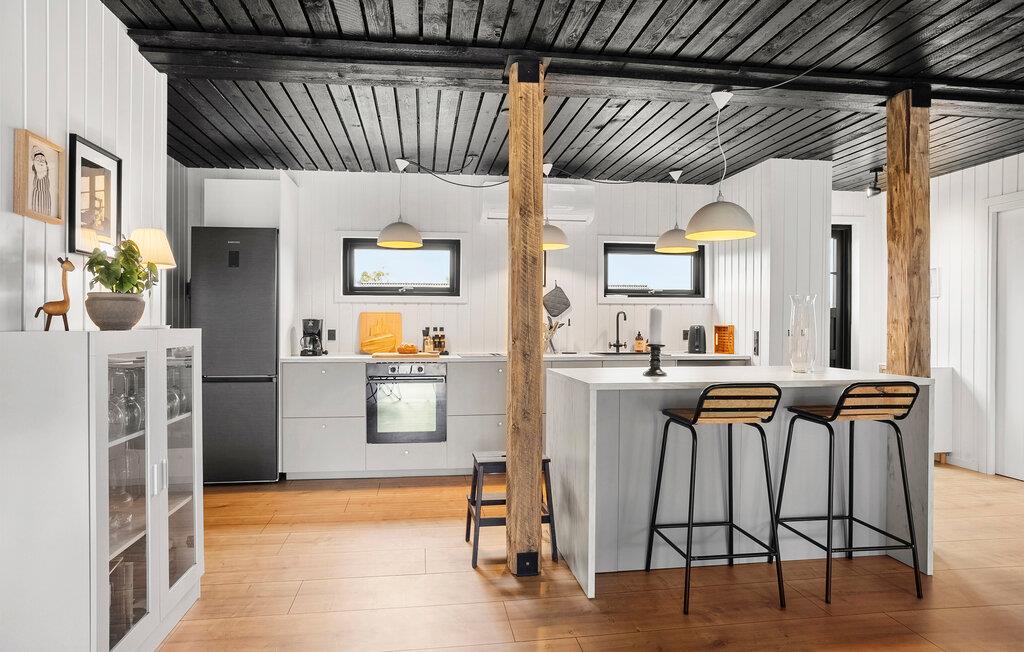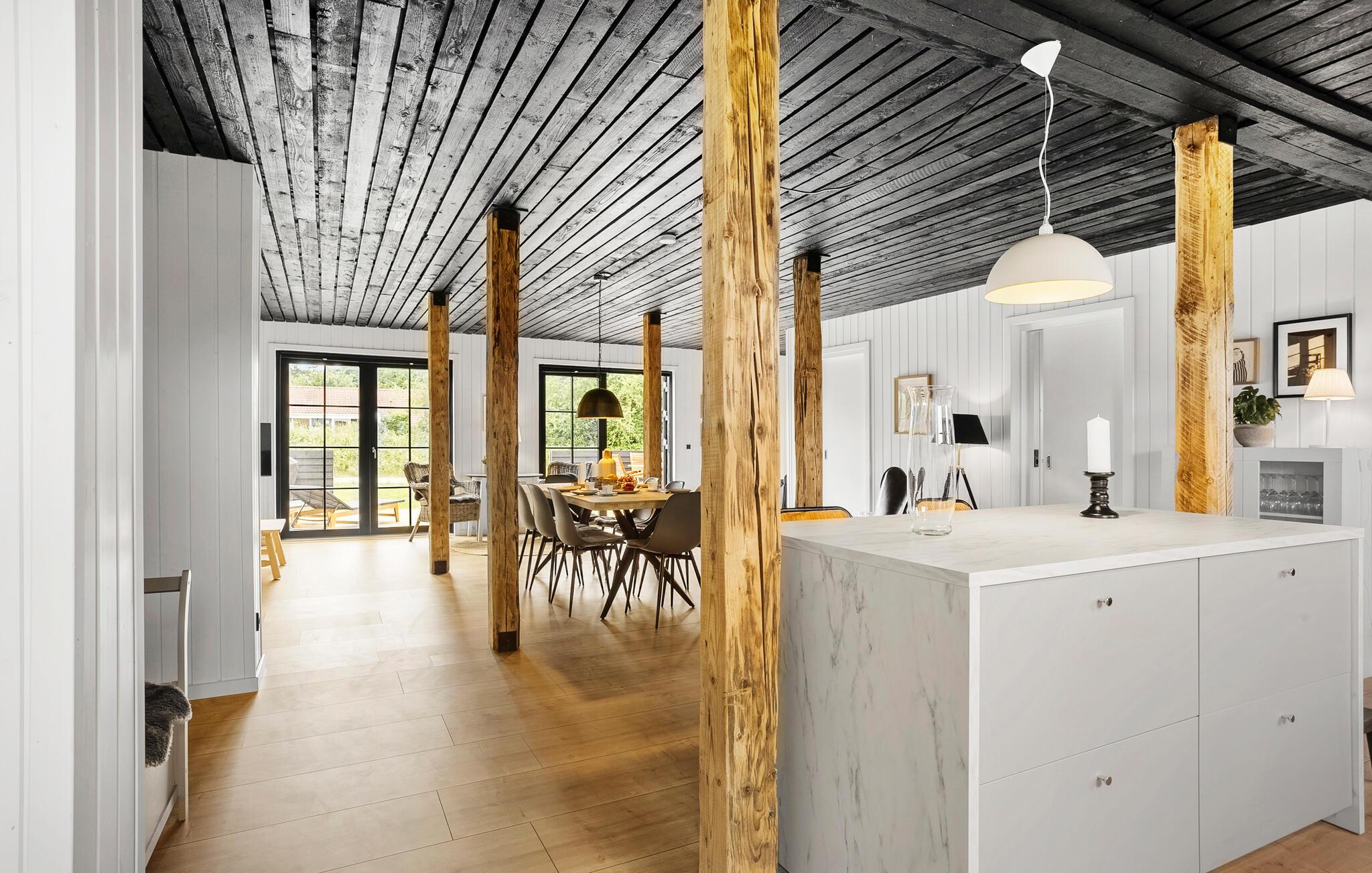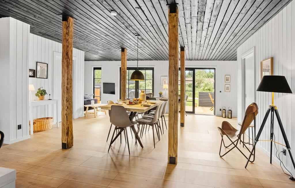 Tag en stilfuld pause fra hverdagen med gode venner eller den udvidede familie i dette komfortable sommerhus. Glæd jer til hyggelig madlavning og muntre måltider ved det varmt oplyste spisebord, giv jer tid til en god snak på den indbydende sofa med et glas vin, stream en god serie eller træk jer tilbage til en hyggekrog med en god bog.