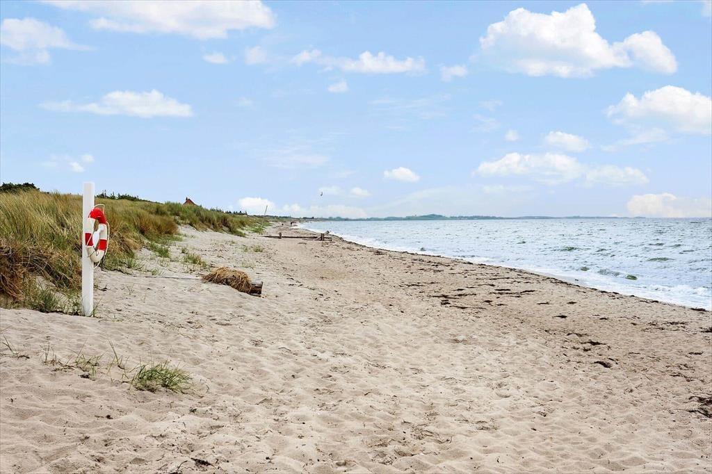 Udenfor fortsætter hyggen på den delvist overdækkede terrasse, hvor du kan nyde de lange sommeraftener med grillmad og et godt glas vin. Terrassen er det ideelle sted at starte dagen med en kop kaffe, mens solen langsomt stiger op over horisonten. Haven er omgivet af frodig natur, og her kan du virkelig mærke feriefreden sænke sig. Kun 660 meter fra sommerhuset ligger Ristinges vidunderlige strand, en af Langelands absolut bedste, hvor du kan tilbringe dagene med at bade, bygge sandslotte og nyde den friske havluft. Den korte afstand til stranden gør det nemt at tage en spontan dukkert, når lysten melder sig.