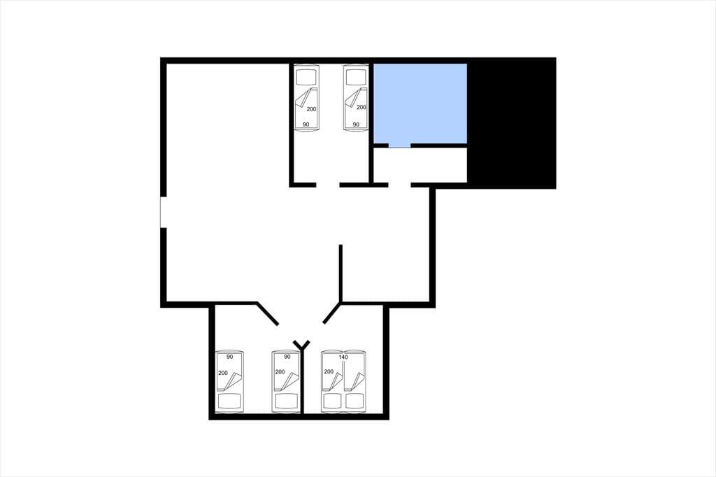 3 værelser: 1 dobbeltseng, 2 senge, 2 senge.