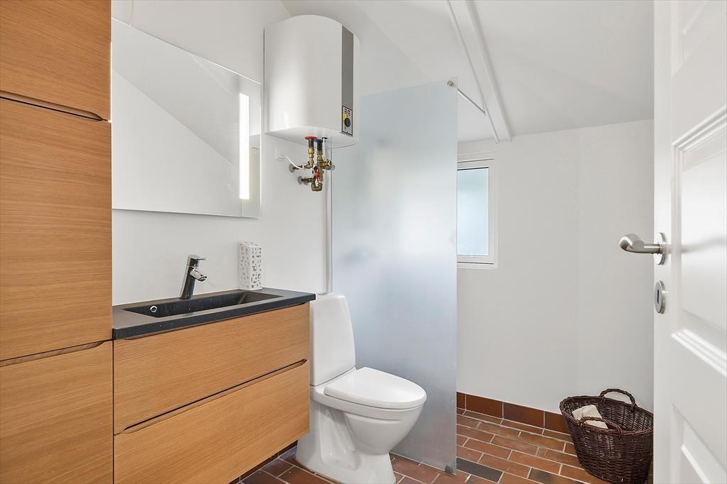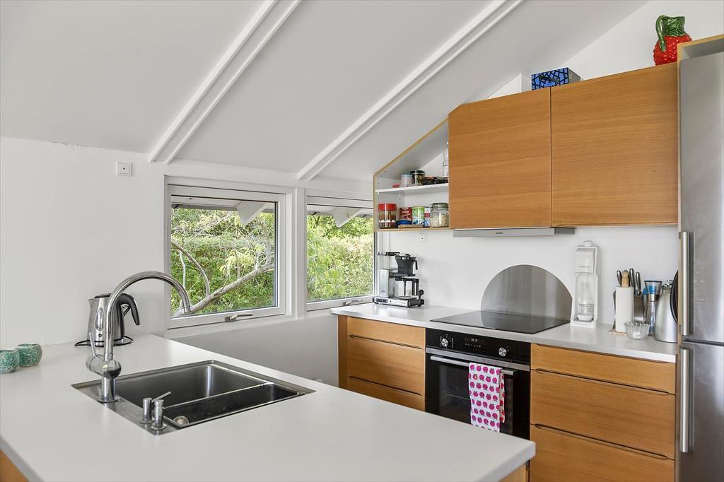 - i dette lyse og venlige sommerhus. Huset har 3 værelser med en dobbetseng i det store og enkeltsenge i de 2 små. Huset har et åbent køkken i forbindelse med stuen. Der er mulighed for at trække den dobbelte sovesofa ud hvis man kommer mere end 4 personer. Badeværelset er moderne, pænt og lyst. Hvis du har lyst kan du også vælge at bade udendørs under åben himmel.