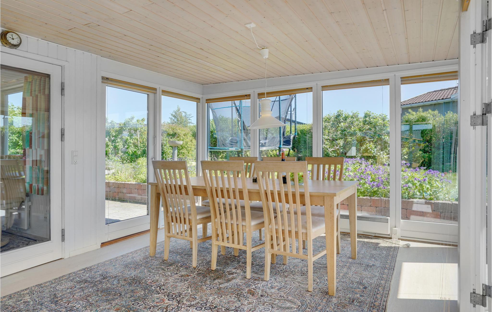 Når vejret er godt, kan I slappe af på husets åbne terrasse og samles til en grillmiddag, mens børnene hopper på trampolinen og løber i haven. Der er også et fællesareal, I kan benytte.