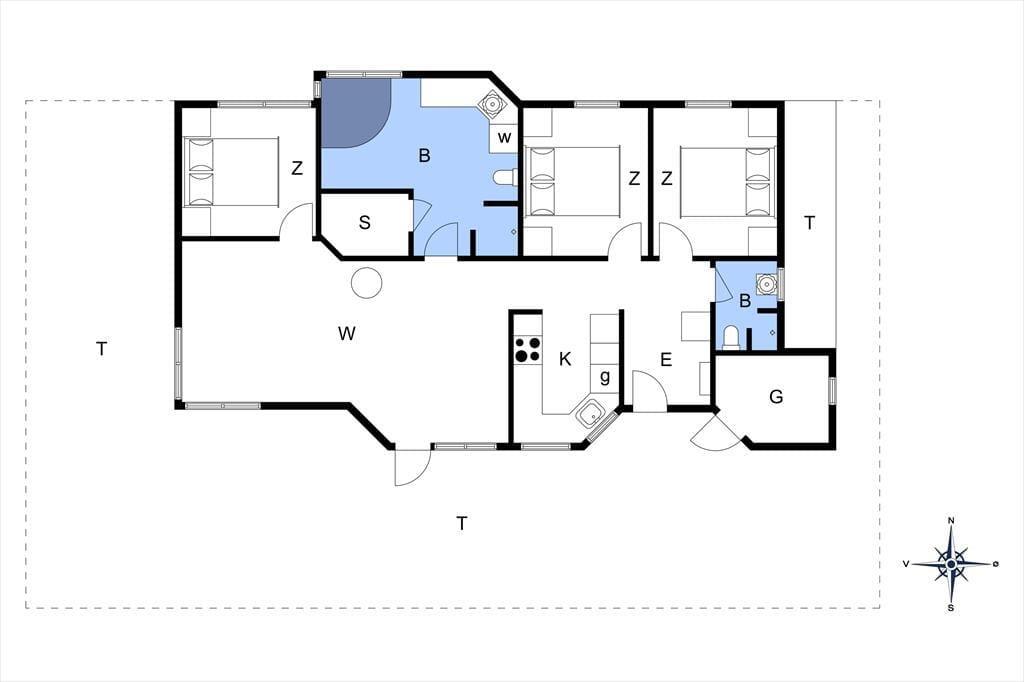 Det 95 m2 store sommerhus har en glimrende planløsning til seks personer. Stue og køkken er forbundne, så I kan nyde samværet hen over halvmuren, mens en del af selskabet laver mad og resten hygger sig med kortspil eller krydsogtværser ved spisebordet. Måske kravler de yngste op for at lege på hemsen, og der er også rig mulighed for at slænge sig med en god bog i stuens sofaafdeling. Der er tre gode soveværelser, og på det største af de to badeværelser er der ikke bare bruser, men også spabad og sauna til livsnyderne.