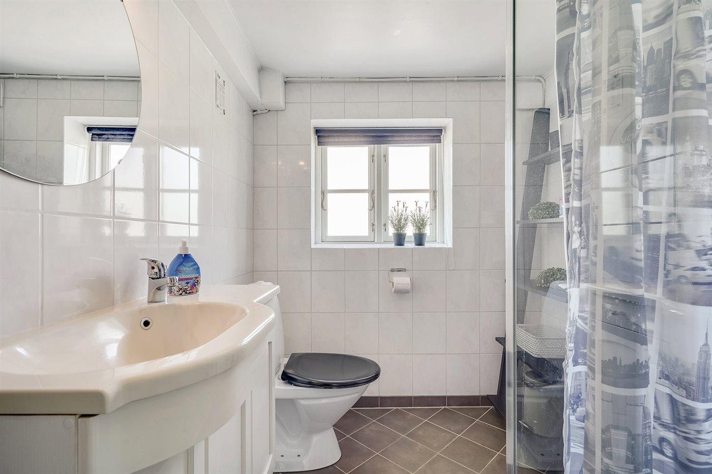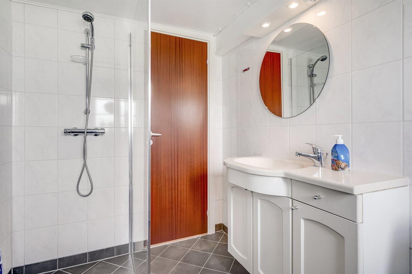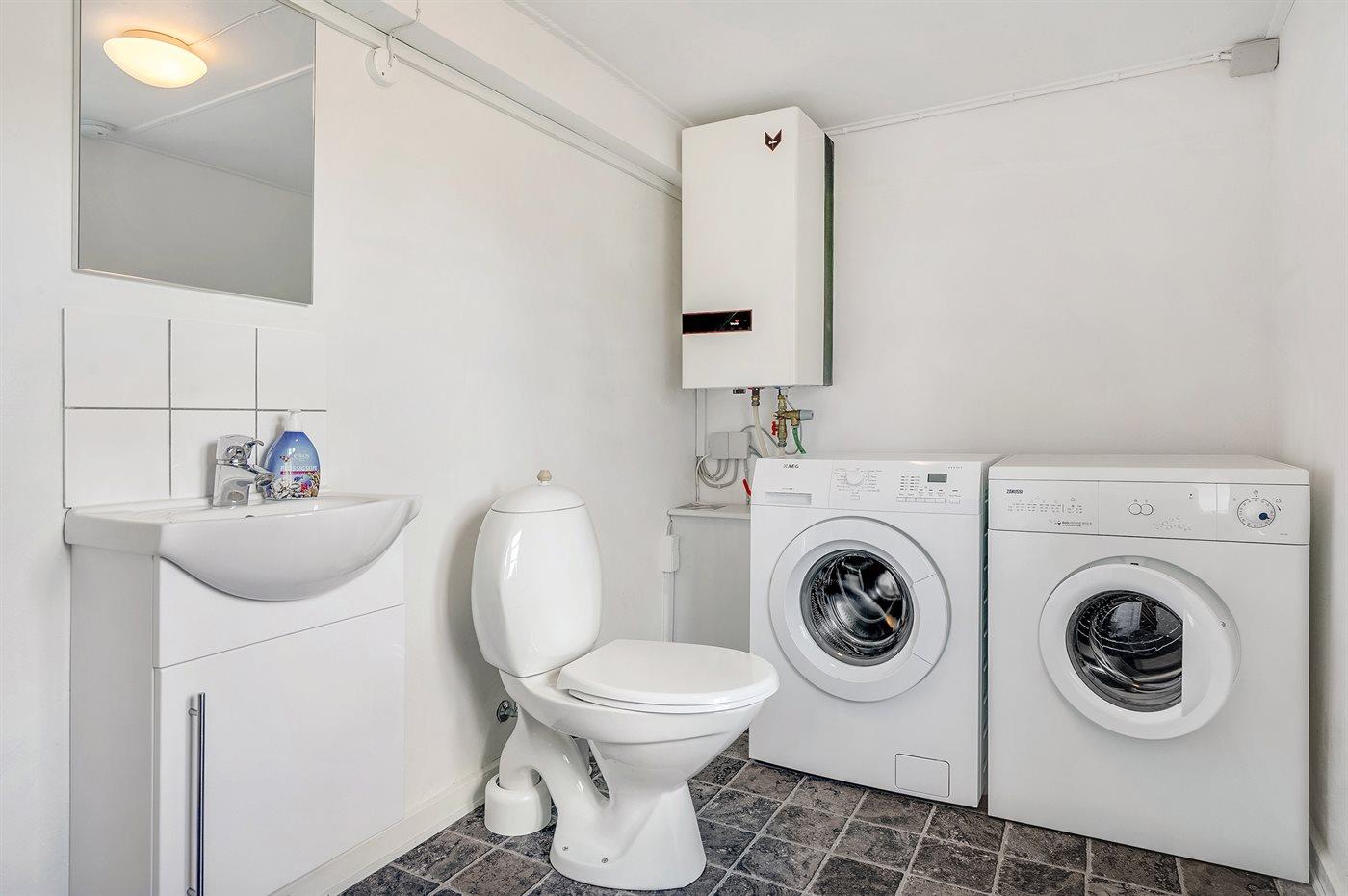 Der er 1 badeværelse med bruseniche og 2 toiletter, heraf 1 gæstetoilet. Der er gulvvarme på 1 badeværelse.