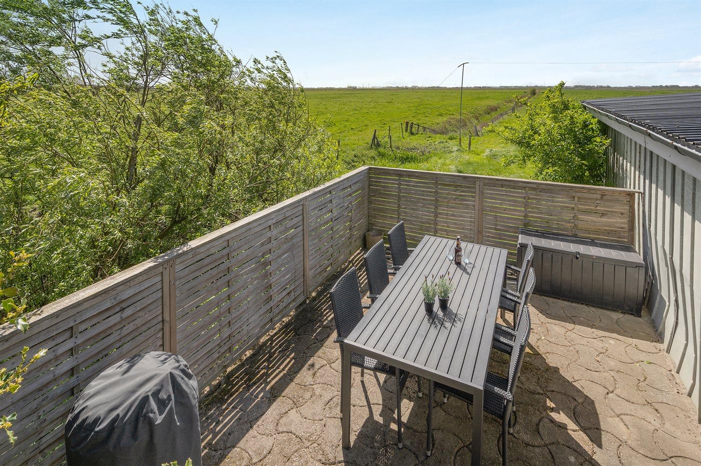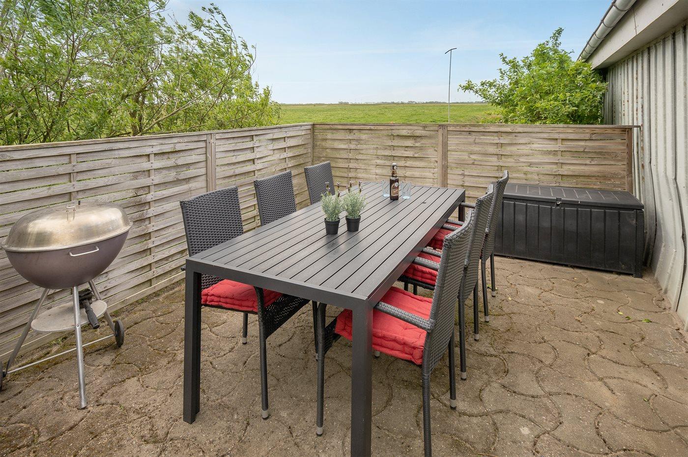 Ferieboligen er beliggende på en 800 m² stor havegrund. Der er 10000 m til havet. Der er 10000 m til Vadehavet. Der er en sø i en afstand af 500 m. Nærmeste forretning er beliggende i en afstand af 6000 m. Til ferieboligen hører 20 m² terrasseareal. Der er carport til rådighed. Parkering ved ferieboligen.