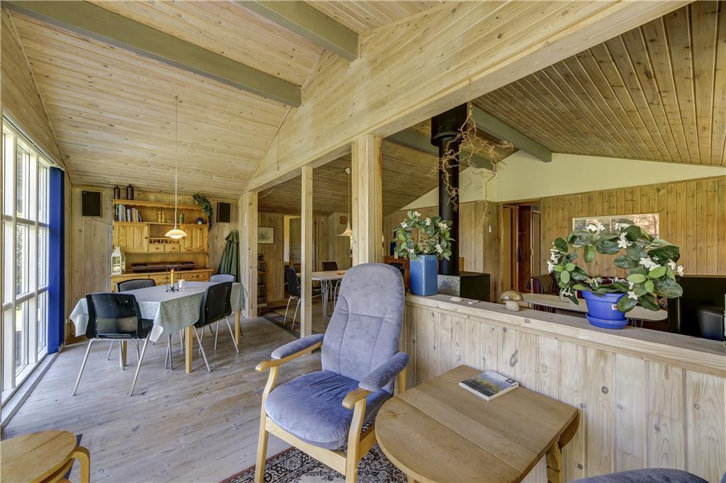 I sommerhuset er der rart og hyggeligt at være. Her kan man slappe af og nyde ferien. Stuen er stor og med brændeovn, hvor familien kan sidde og hygge sig sammen. Her er gratis brænde. Supplerende en varmepumpe m/køl. Badeværelset er med bruseniche samt vaskemaskine og tørretumbler. Her er et godt og funktionelt køkken med god skabsplads. Der er tre soveværelser i sommerhuset foruden de to sovepladser i annekset.