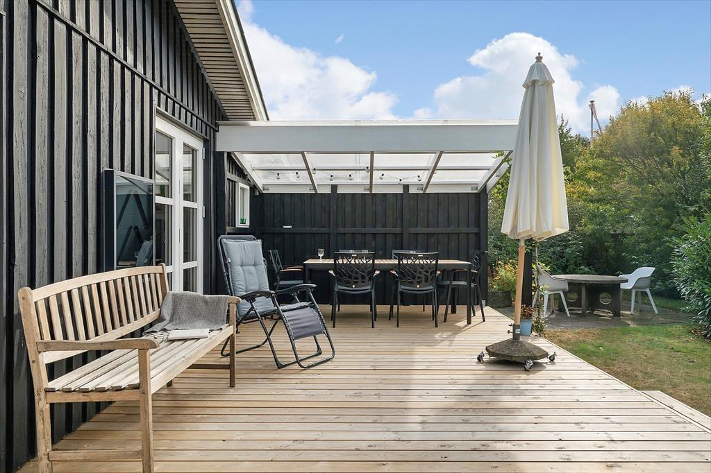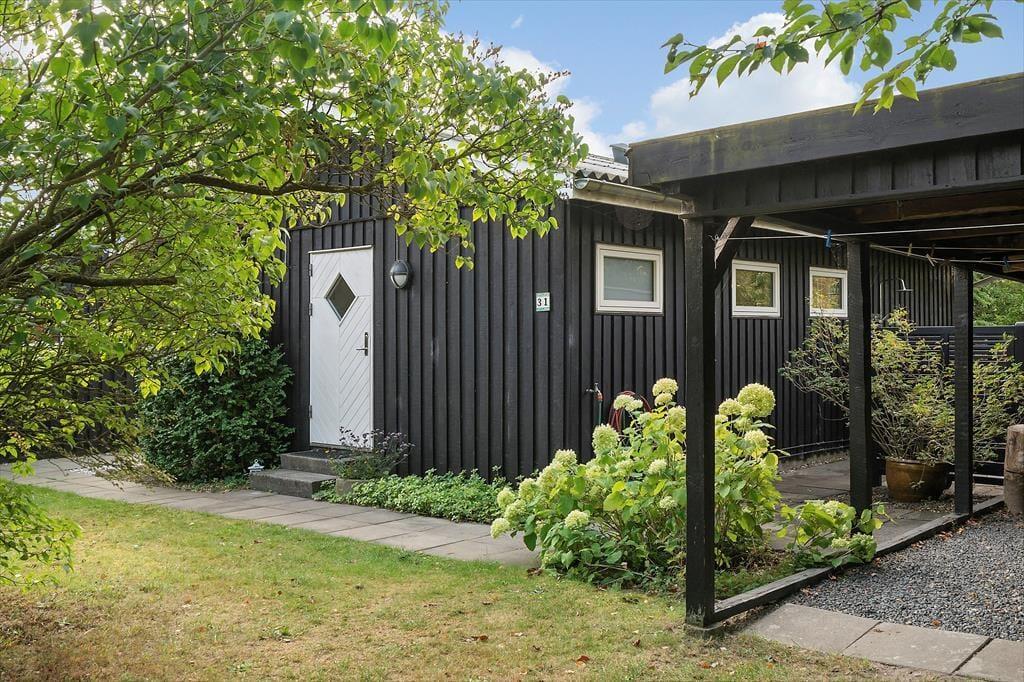 Ved ankomsten til dette hus er der mulighed for at parkere i en carport. Helt ny træterrasse mod syd med fine havemøbler, liggestole, grill og parasol. For de mindste er der sandkasse og gynge. Haven er omkranset af træer og buske, så I kan derfor opholde jer ganske ugeneret dagen lang. Med kun 400 meter til en herlige badestrand, er vi sikker på, I dagligt vil nyde de muligheder, der er ved vandet, uanset om det er solbadning, badeture, at bygge sandslotte eller gå lange ture ved kysten.