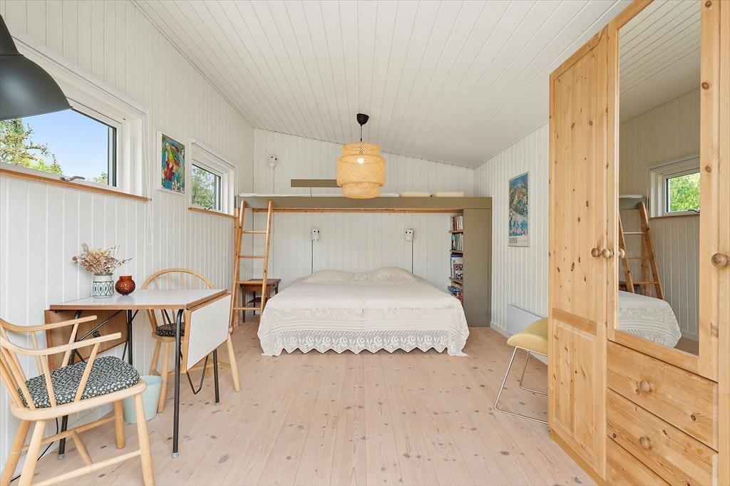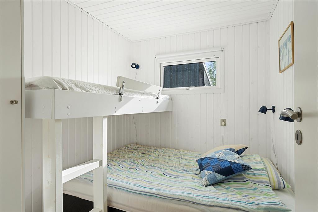 Selve sommerhuset har to soverum med dobbeltsenge og i det ene har man en ekstra soveplads i form af en køje.