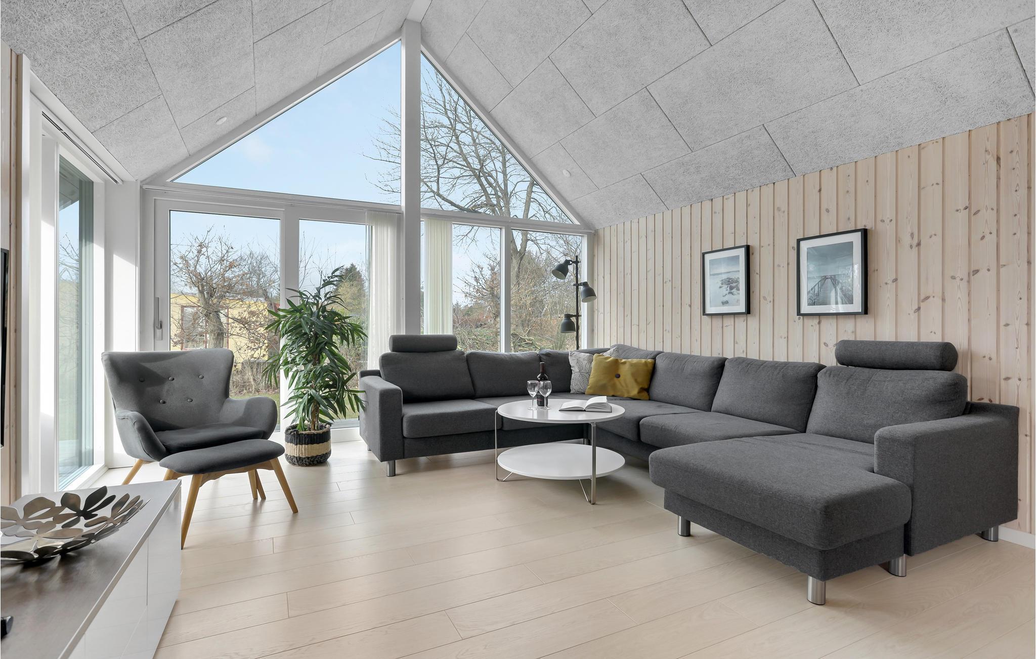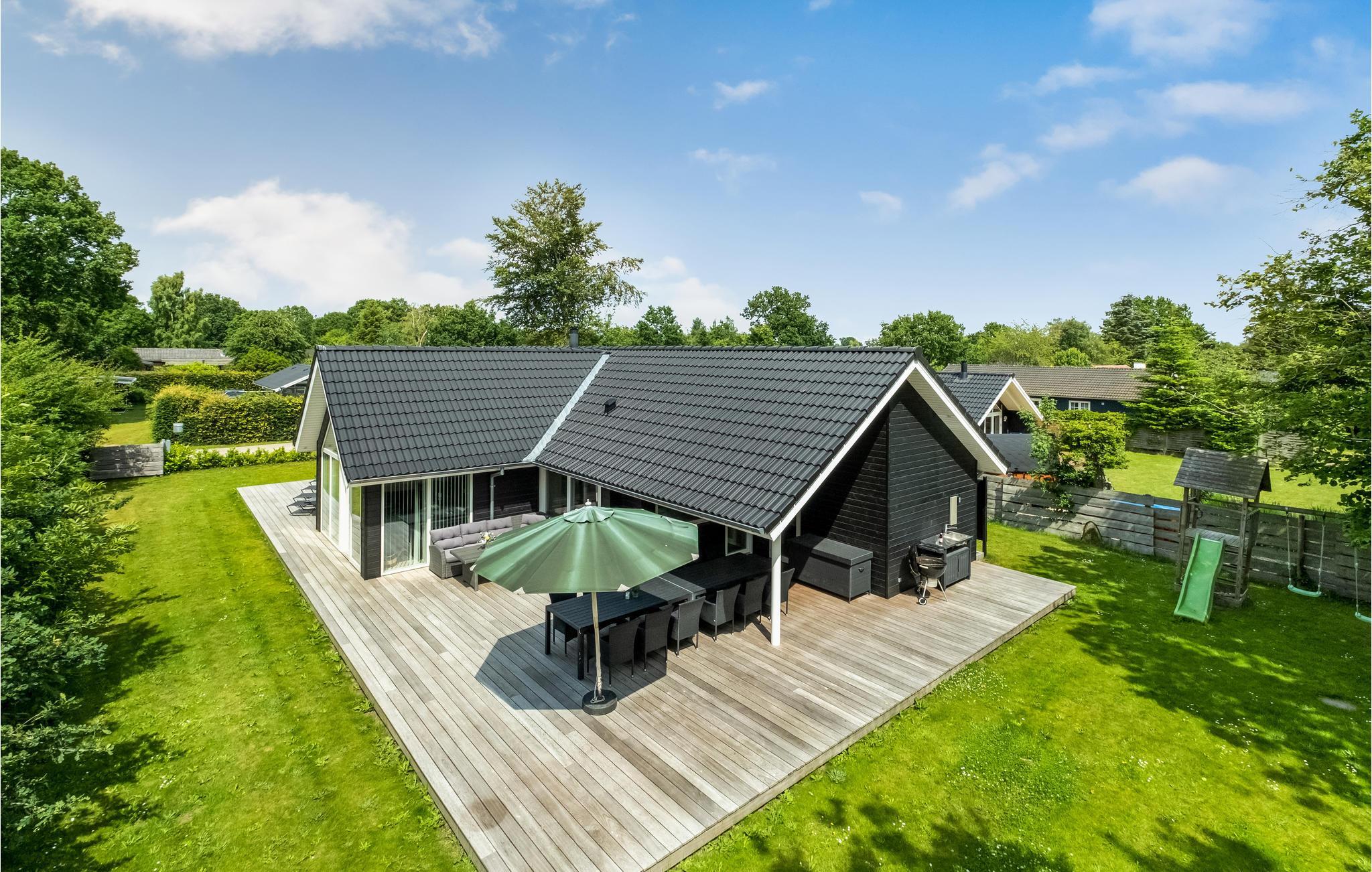 Lækkert sommerhus nær Rude Strand med aktivitetsrum, spabad og plads til hele familien.