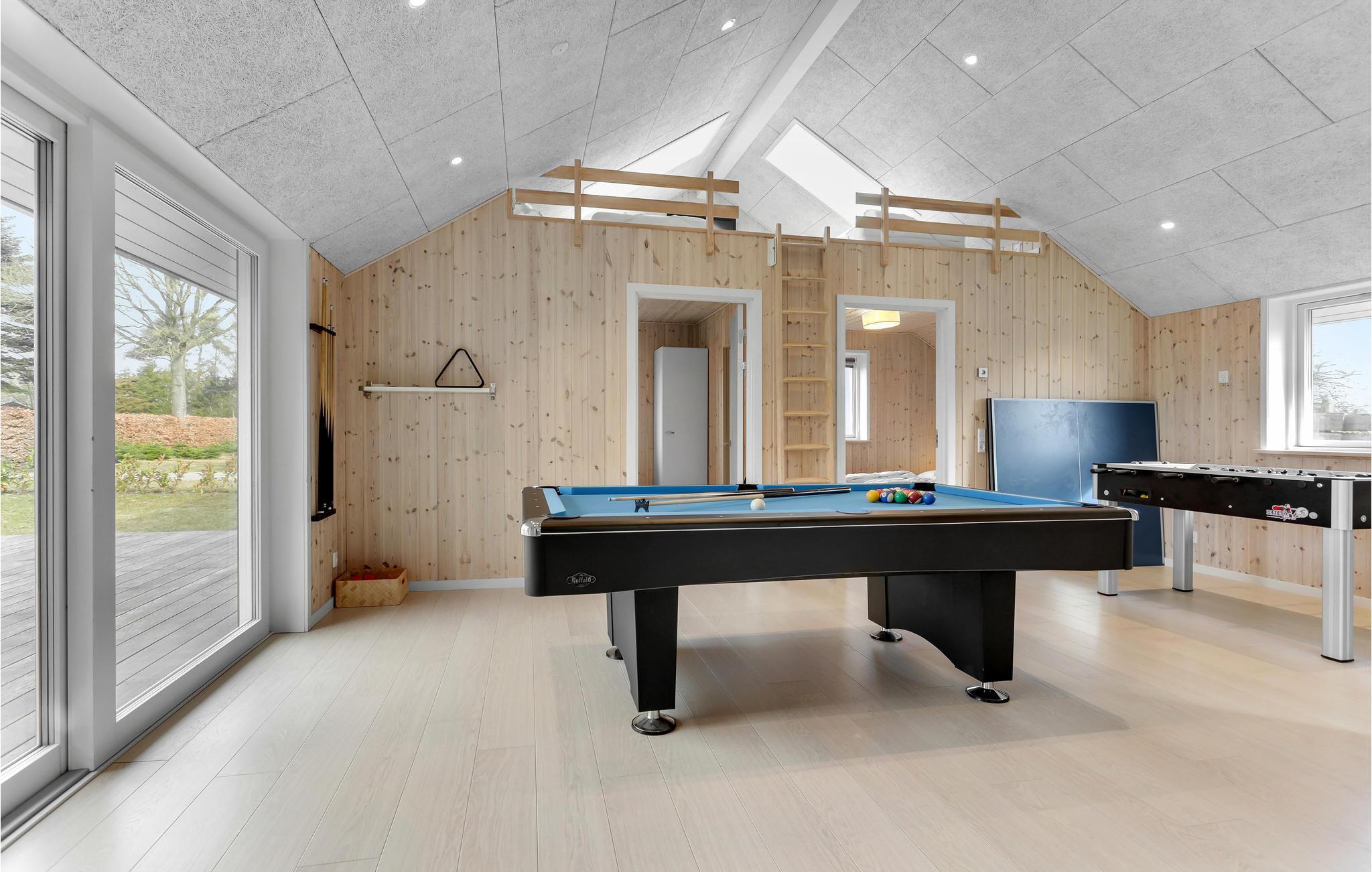 Huset byder bl.a. på et aktivitetsrum med bordtennis og billard, så her kan I sagtens holde ferie uanset årstiden, da I altid kan få tiden til at gå. Det store køkken ligger i åben forbindelse med stuen og de gode terrasseforhold. Der er ikke langt til den, næsten uforstyrrede, Rude Strand. Der er heller ikke langt til populære Saksild Strand, hvor mange kitesurfere holder til når vinden blæser godt i forår- og efterårsmånederne. I sommerperioden er der indkøb, ishus og restaurant ved Saksild, og ønsker I en gourmetmiddag er der kort afstand til Norsminde med Norsminde Kro. Her finder I også en lille charmerende lystbådehavn. Området byder på flot natur og mange muligheder for at cykle, vandre eller dyrke vandsport.