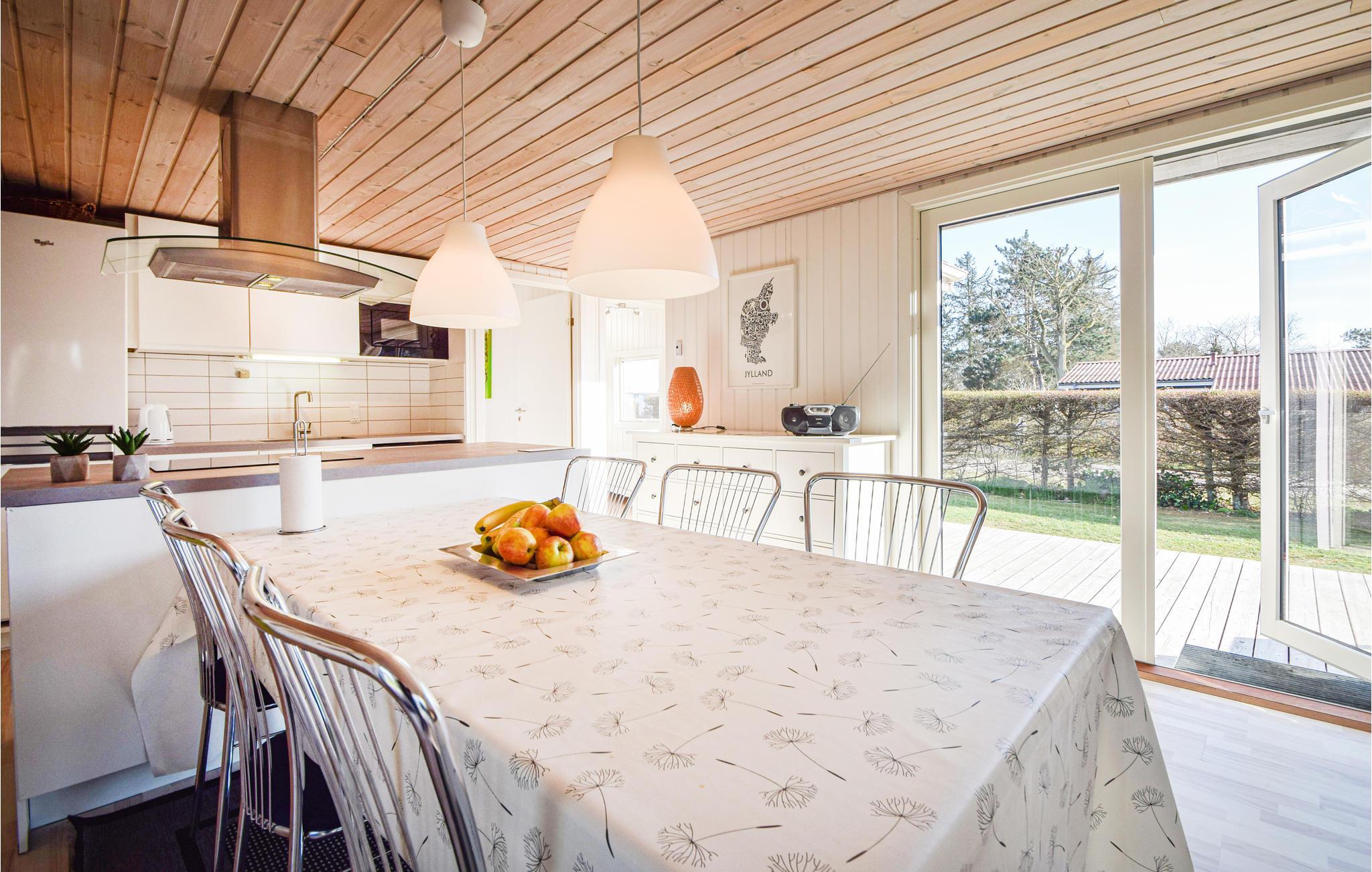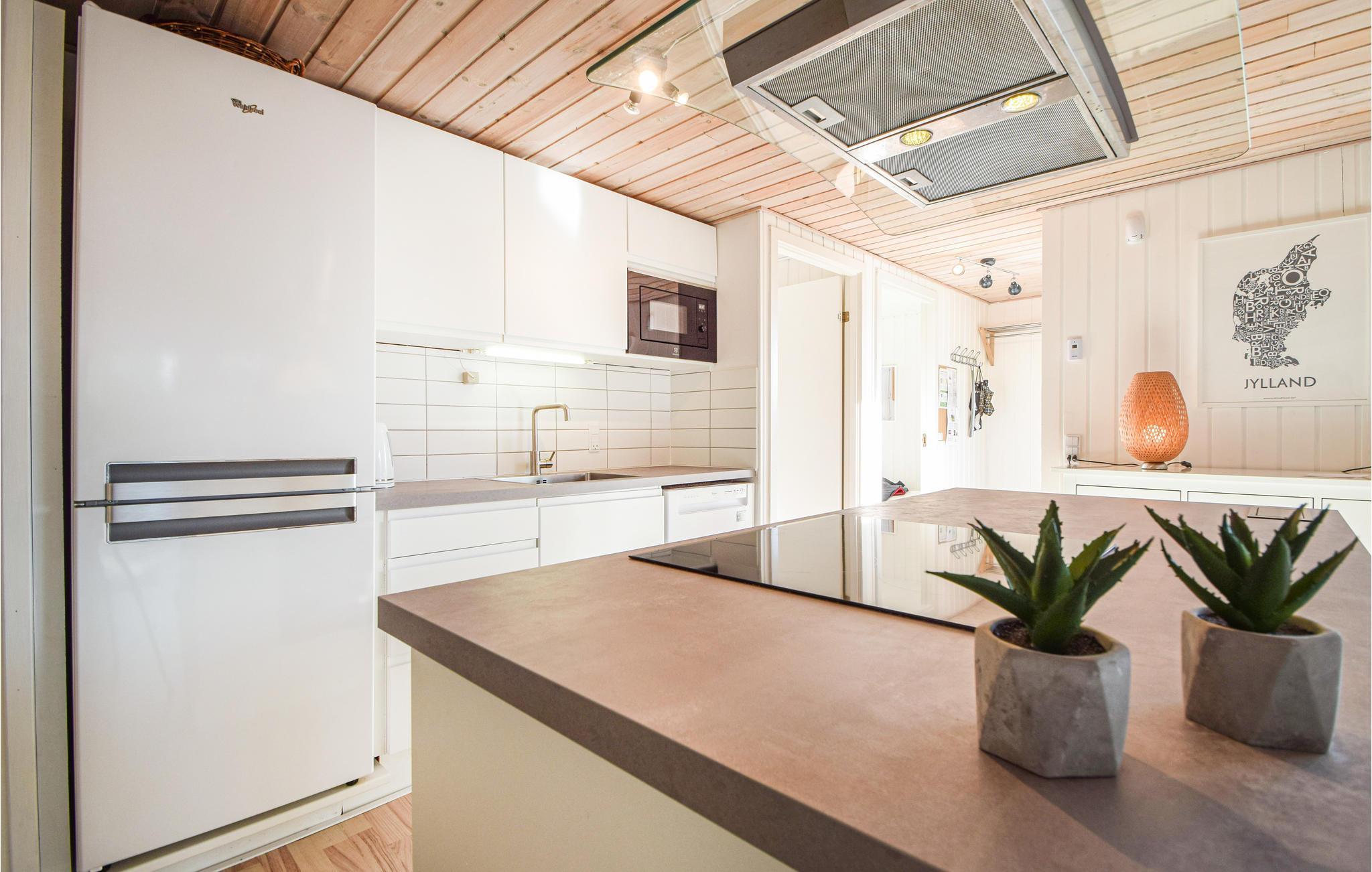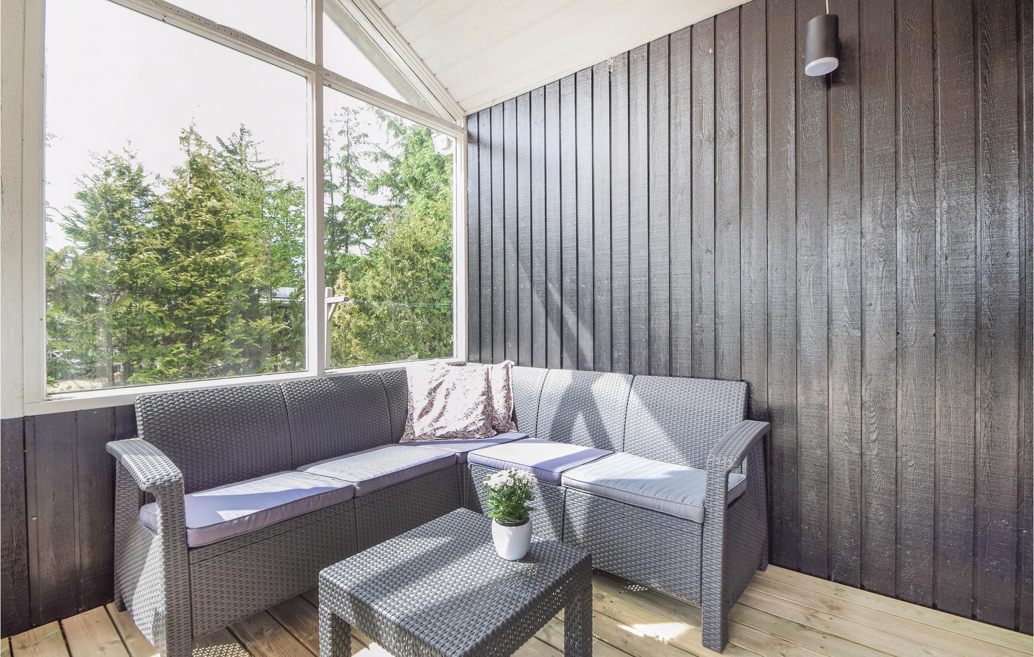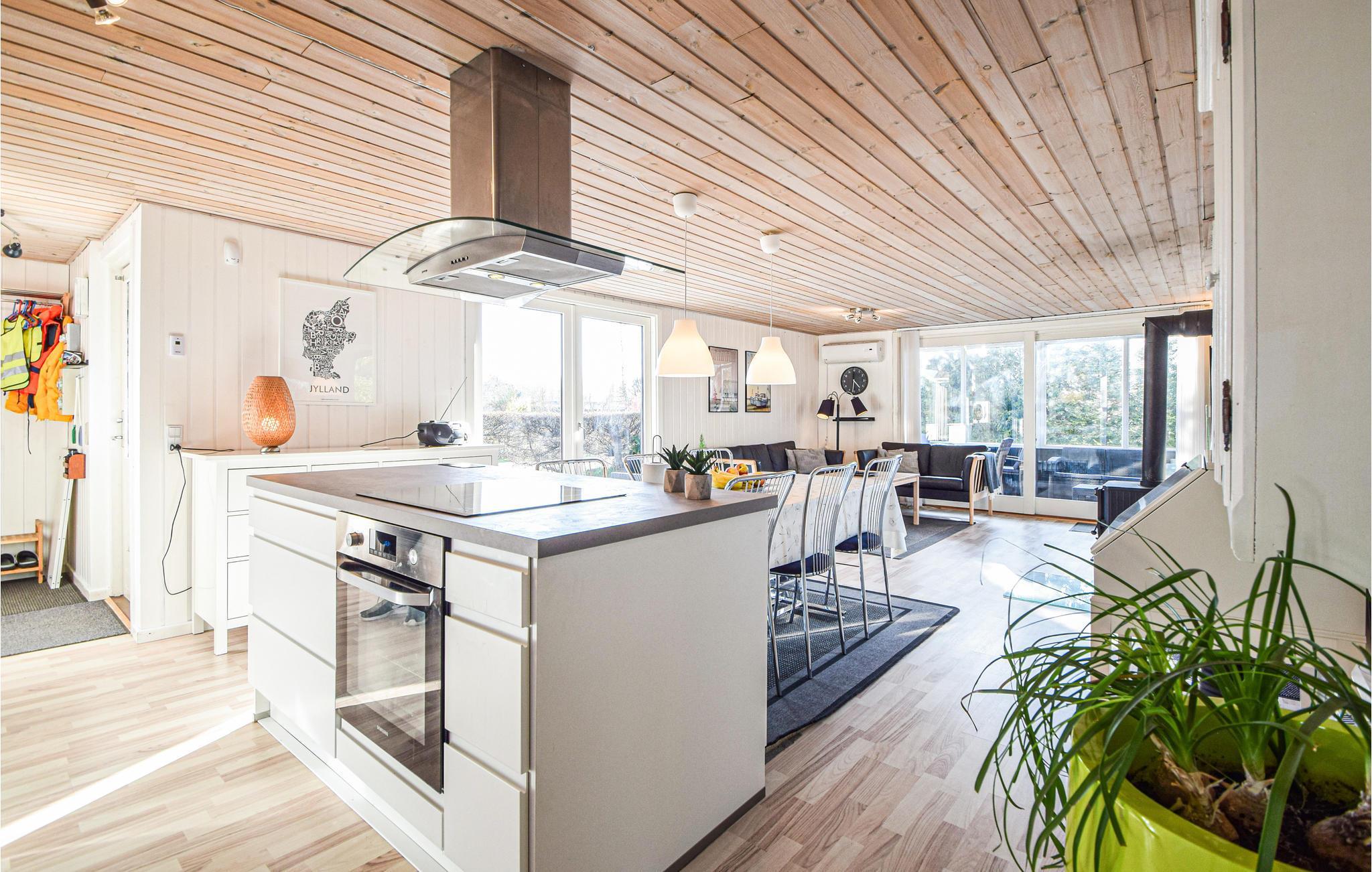 Flot og velbeliggende feriehus, der ligger på en stille sommerhusvej på en aflukket have-/naturgrund med buske og træer. Huset er indbydende og pænt møbleret og fremtræder lyst og venligt overalt. Den funktionelle køkkenafdeling ligger i åben forbindelse med stuen og herfra har I udgang til en skøn solgård og terrassen. Huset ligger centralt for udflugter til mange attraktioner i Østjylland. Storbylivet kan I opleve ved at tage en tur til Aarhus.