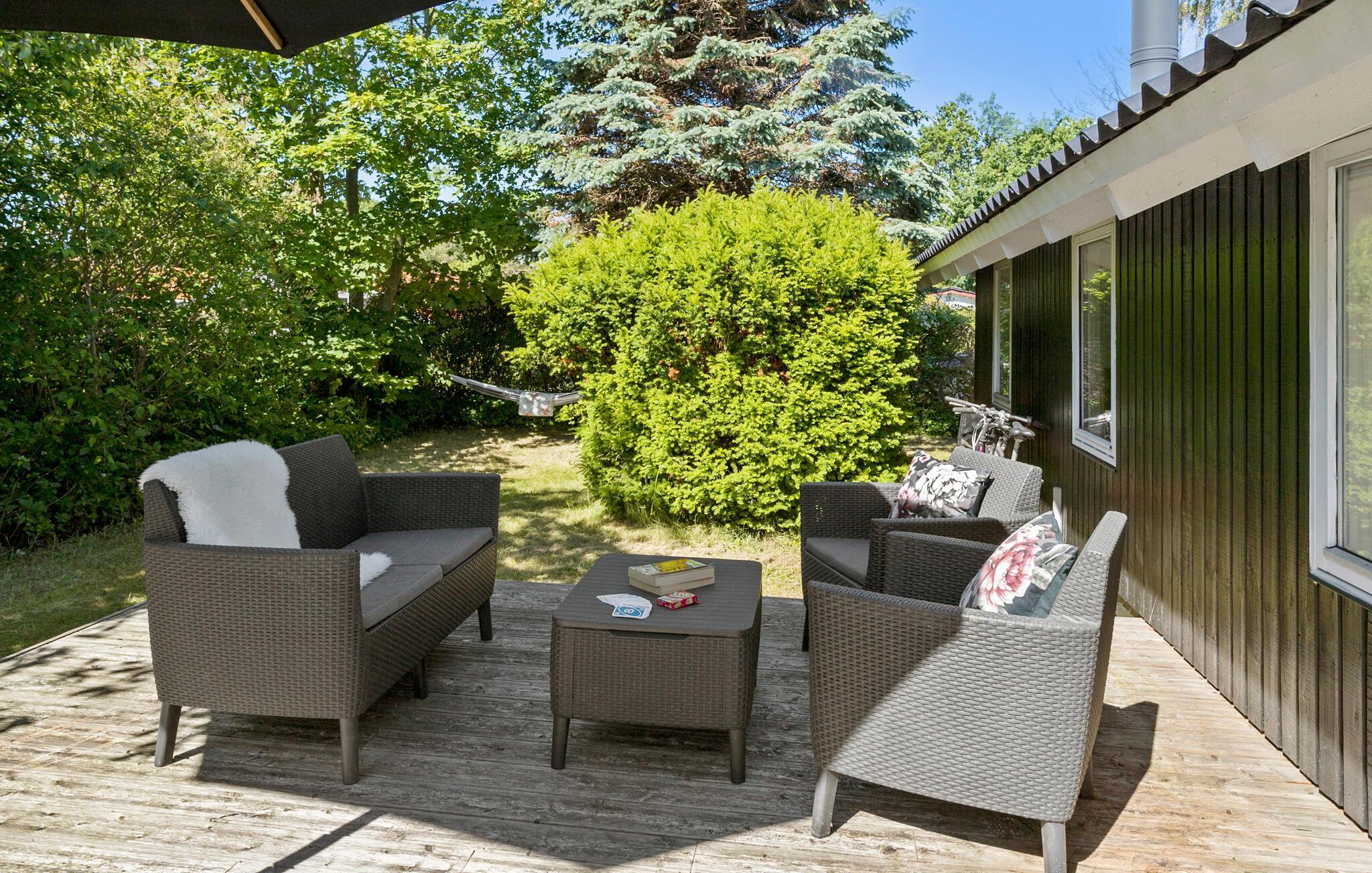 Jeres charmerende feriehus byder med sin rummelige terrasse og hyggelige indretning på mange muligheder for at slappe af med hele familien. Tilbring hyggelige timer på terrassen, som er udstyret med komfortable siddepladser og et stort spisebord til fælles måltider i det fri. Start dagen med en lækker morgenmad i solskinnet, og slap derefter af i hængekøjen.