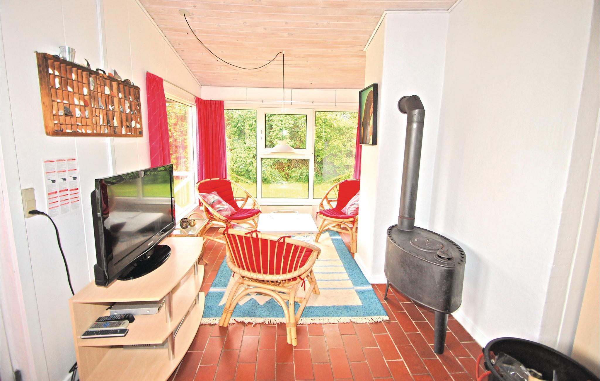Velkommen til dette klassiske feriehus, som vil imponere jer med sin solide indretning og praktiske opholdsstue. Efter en lang dag i naturen kan I slappe dejligt af i hotellets sauna eller fyre op i brændeovnen. Fra stuen er der direkte adgang til den overdækkede terrasse, hvor I kan nyde den friske luft, mens børnene leger trygt og uforstyrret i haven.